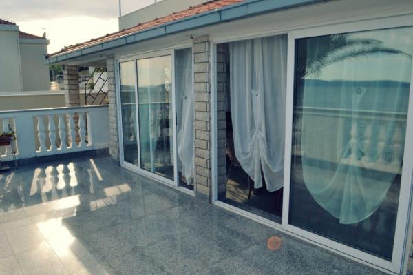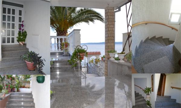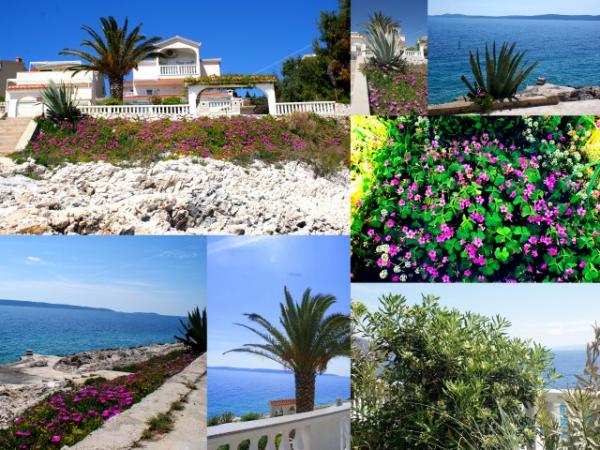 Palma Apartments are located on the island of Ciovo, 3km away one of the most beautiful cities of the Adriatic coast town of Trogir, which is associated with the bridge. Fully furnished apartments are located in a family home with lots of greenery and Mediterranean plants, the sea with a private beach, away from traffic and noise, and a beautiful view of the sea and islands. The apartment on the first floor (60 m2) consists of a bedroom, kitchen, dining room, living room with double bed, bathroom with shower and washing machine and a balcony overlooking the sea. Ground floor apartment (120 m2) consists of three bedrooms, bathroom with shower, a kitchen (with dishwasher), living room and a large semi-enclosed terrace (30 m2) with dining area and a sofa bed and a sea view. Appartments have full equipment (air conditioning, internet, satellite, washing machine and dishwasher). Guests can use the grill, outdoor shower and private parking.