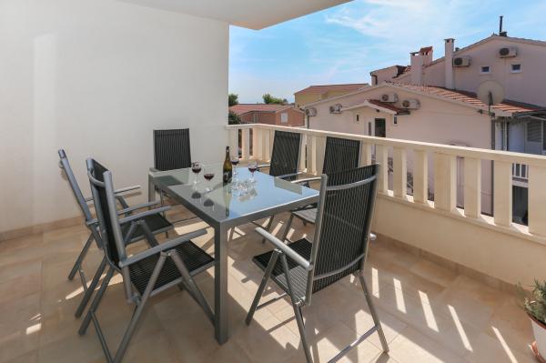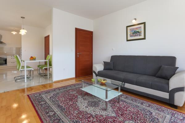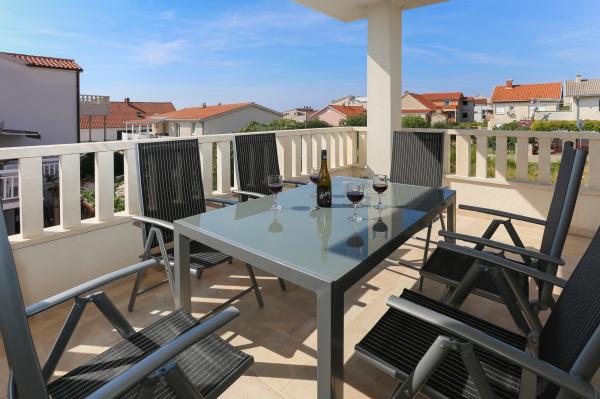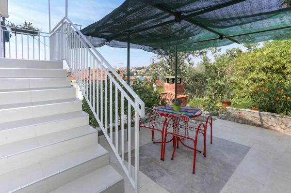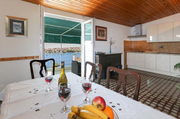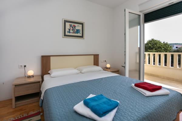We had a good time at this beautiful, spacious on 1st floor apartment. There was plenty of room for our family of 4. Our teenage boys appreciated the free WiFi and although the apartment is cool with it's shutters and hillside position, the air-con, when needed, was very effective. The kitchen is brand new and we made good use of it as well as the outdoor BBQ. Zdravko and Agneza were perfect hosts and help to make our holiday so great. They very kindly cooked for us which was such a treat as they are both great cooks! Zdravko speaks good English and Italian. The area is in a quieter part of Okrug Gornji and because of it's hillside position may not be suited to the elderly or infirm but we loved the fact that it meant we have a beautiful seaside view! We enjoyed jumping in to the clear sea from the concreted jeties which are very close to the apartment. Thank you once again, wonderful hosts!