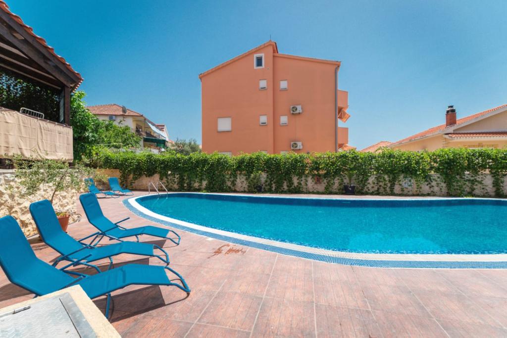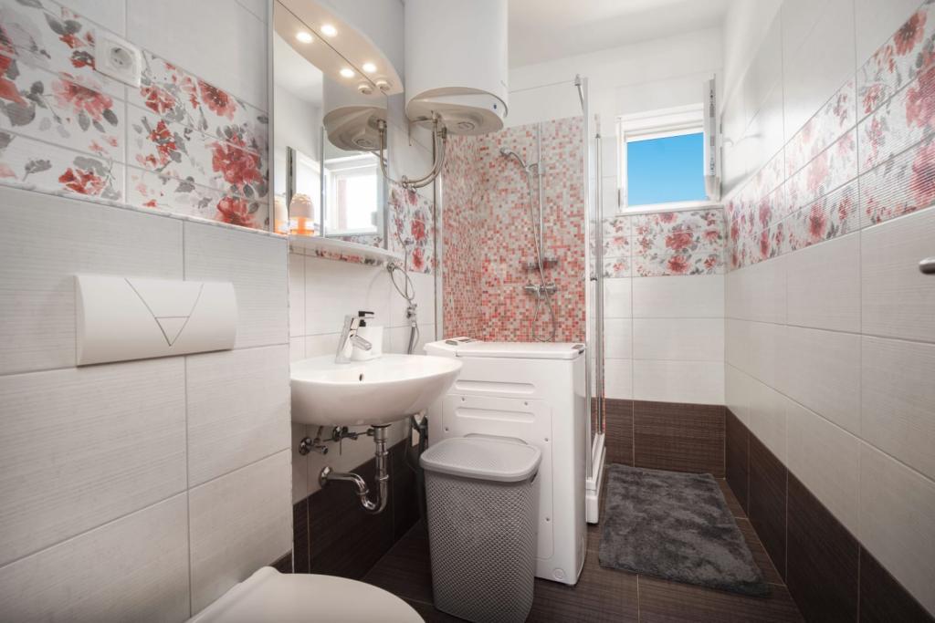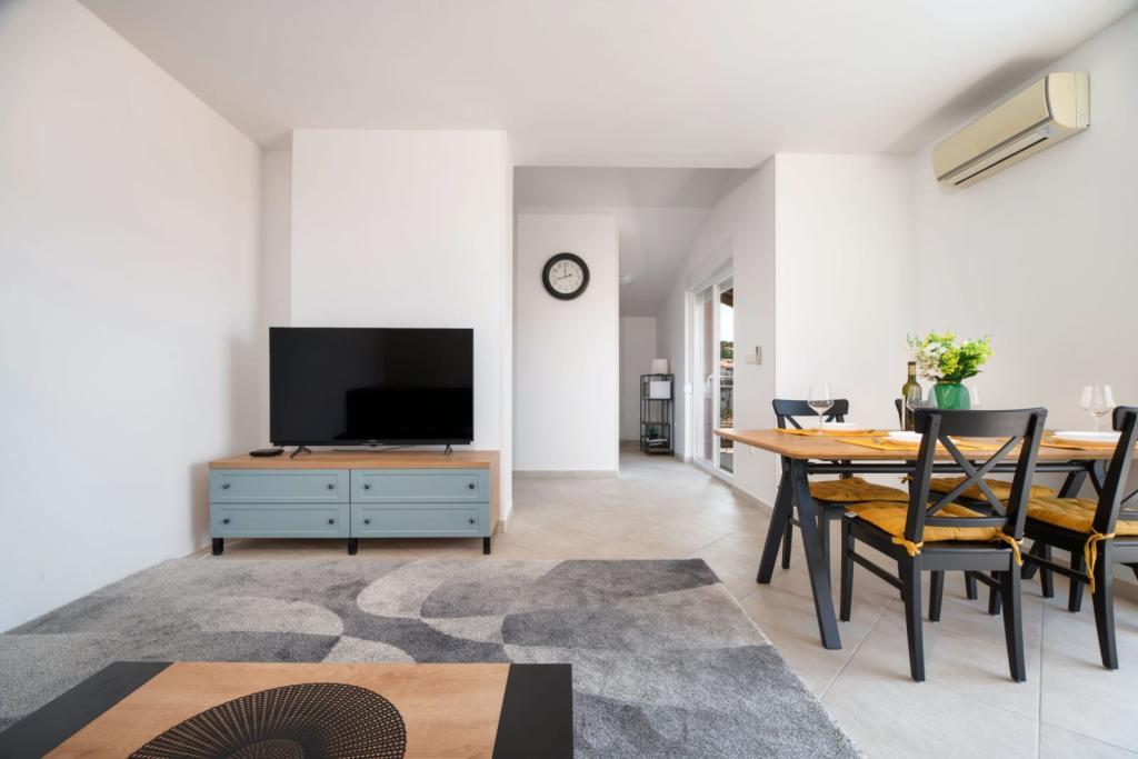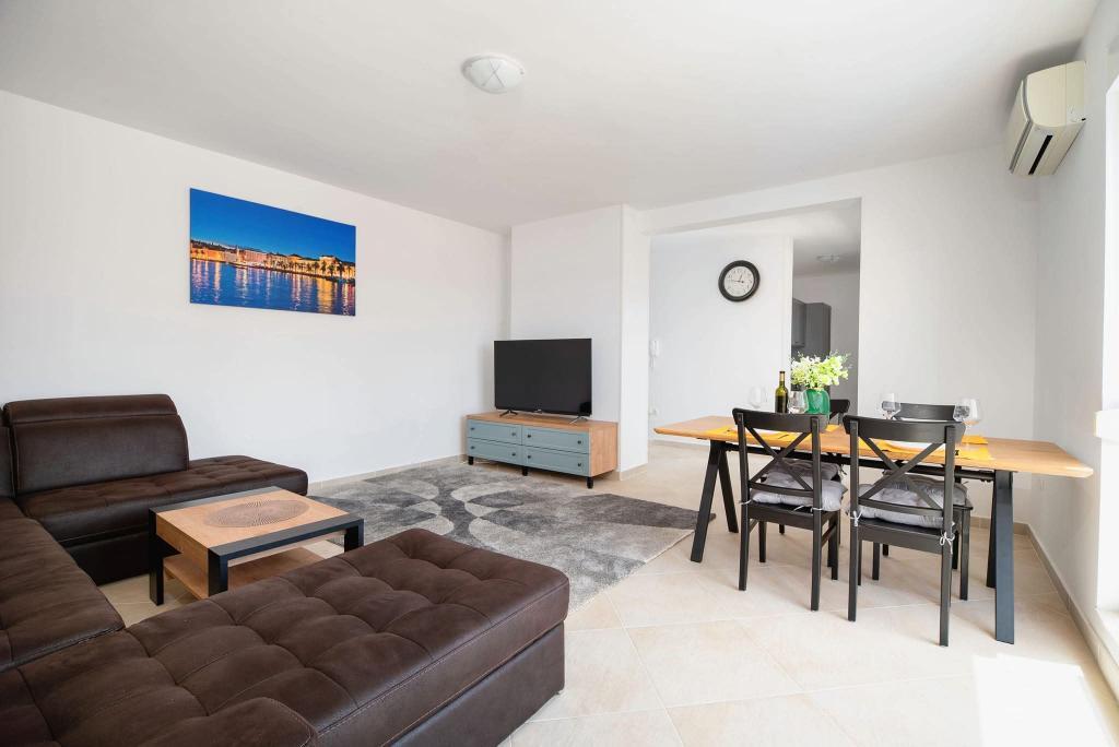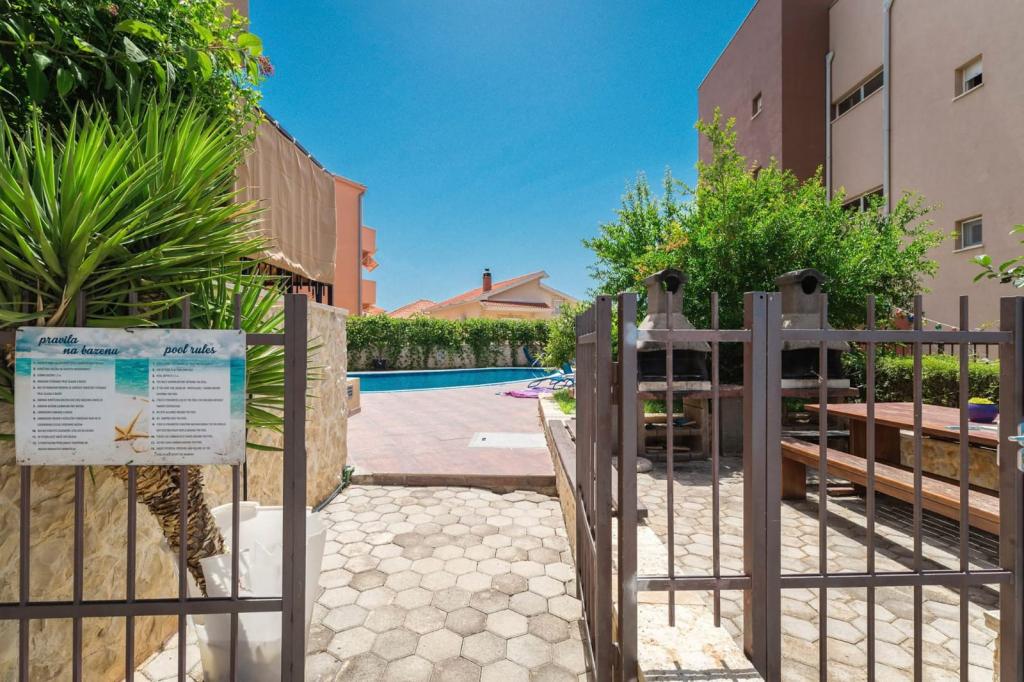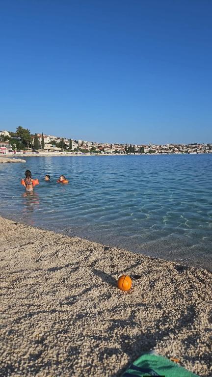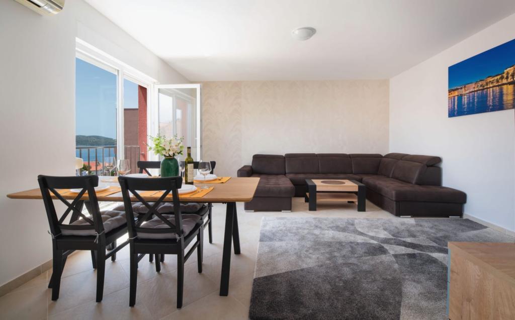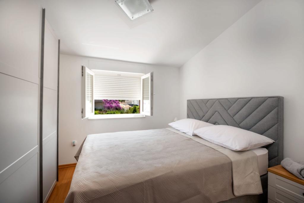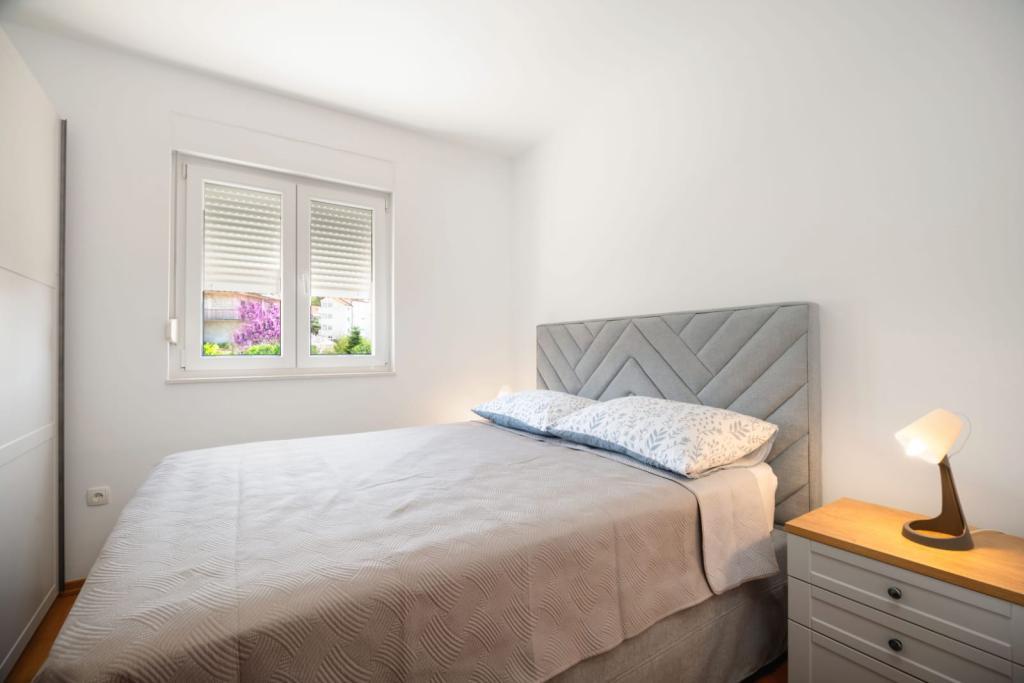 The apartment consists of 2 bedrooms, a bathroom, a kitchen, a living room terrace with a total area of 68m2. Each room has a large double bed and air conditioning. The kitchen has everything you need to prepare a delicious meal. We also have a cot for a child (on request). The apartment is located in a quiet part of the island. Camp Rožac is 100 m away. Supermarkets, restaurants and a bakery are nearby. The apartment has its own parking space at your disposal. The swimming pool is open from 15.06.-30.09.