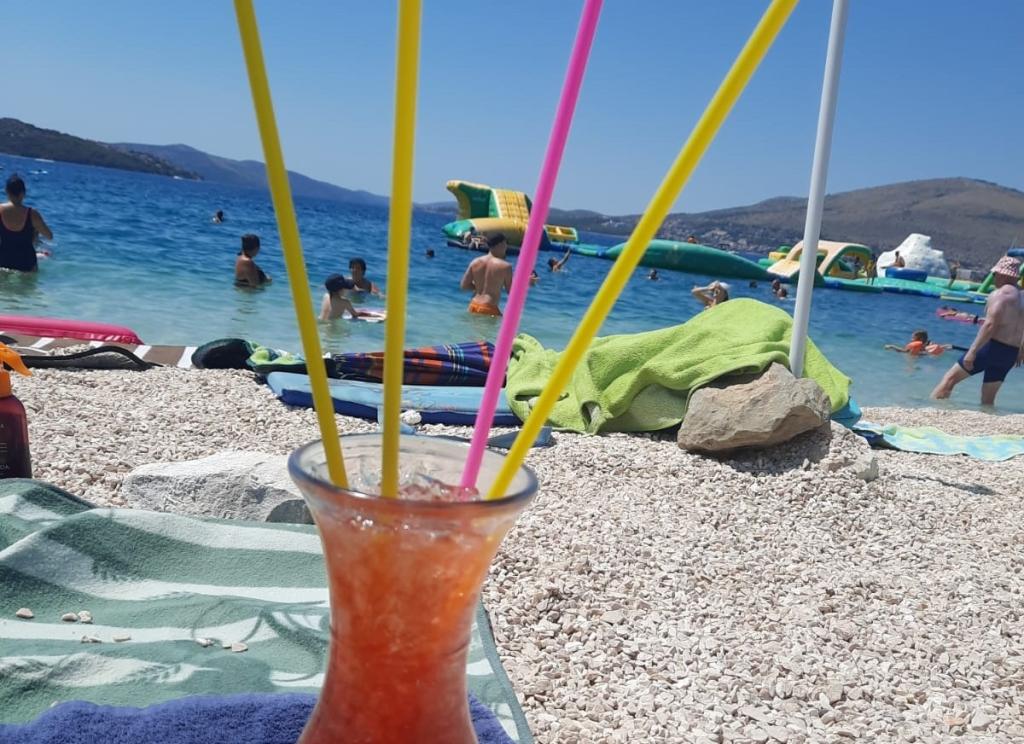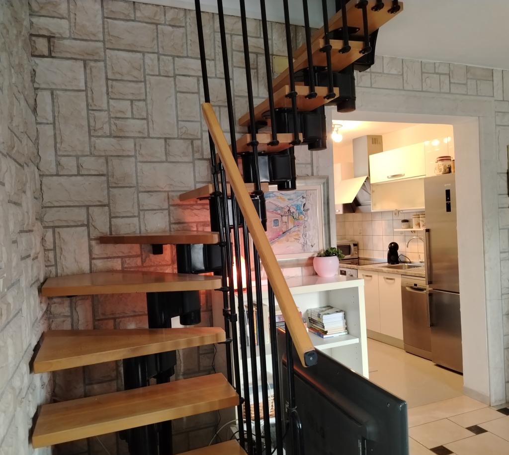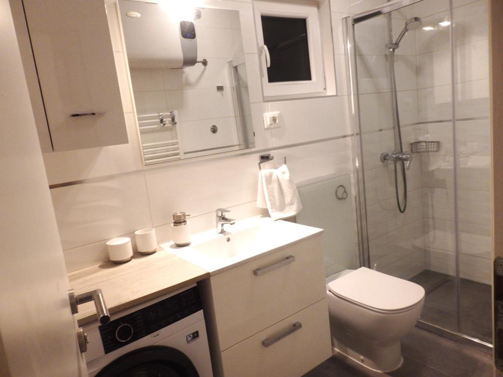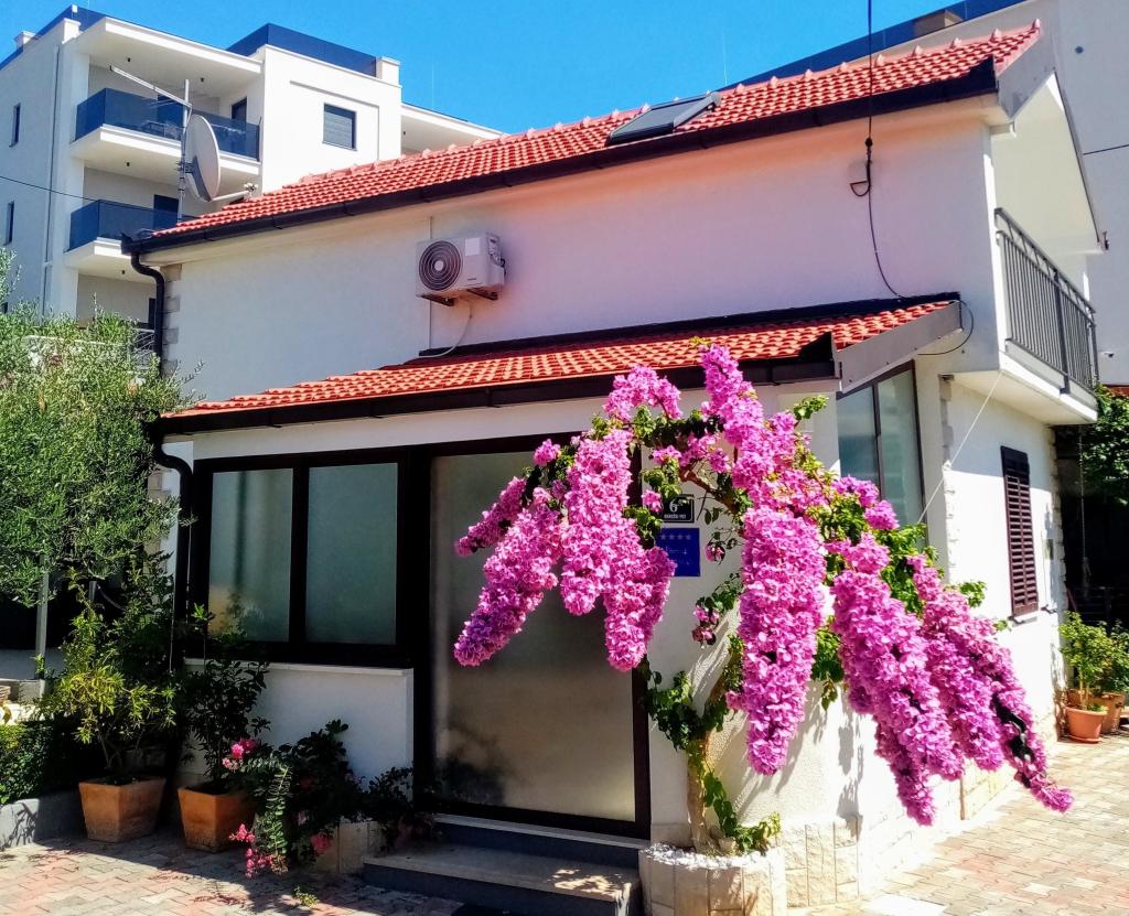 Modernly equipped apartment with sea view, large terrace and garden, close to the beach, 4 stars. The apartment is located in a house (ground floor and first floor). On the ground floor there is; entrance area, kitchen, living room and bathroom. The living room is equipped with a sofa bed for two people. On the first floor there is: bedroom, bathroom (with separate shower and toilet) and a covered balcony of 10 m² with sea view. The bedroom has a comfortable double bed and an armchair that converts into a cot. The kitchen on the ground floor leads to a 45 m2 terrace. The barbecue and dining table are in the covered part (15 m2), and the remaining part is an area for sunbathing and relaxing with a view of the garden.