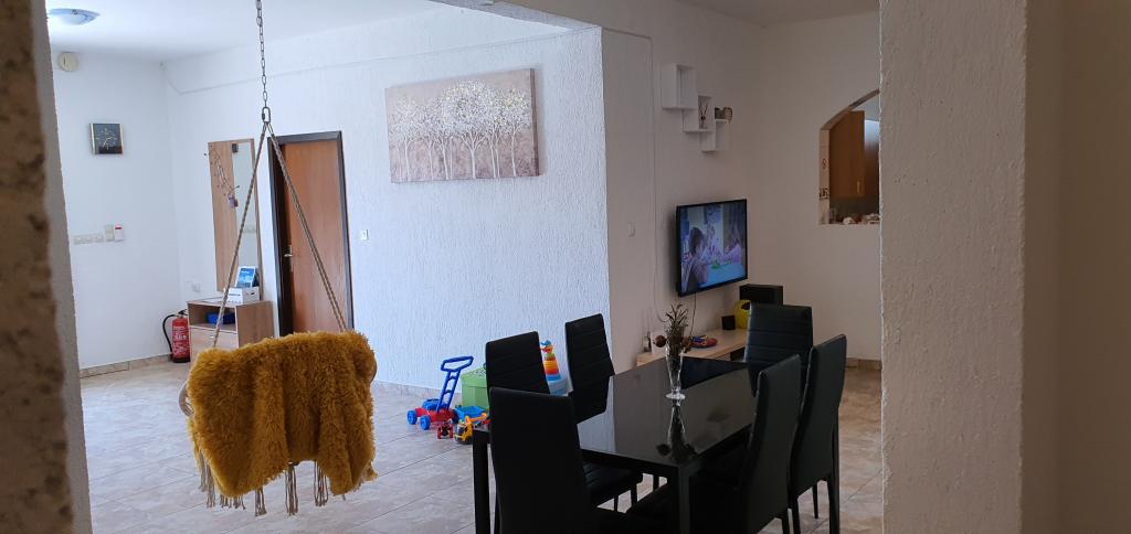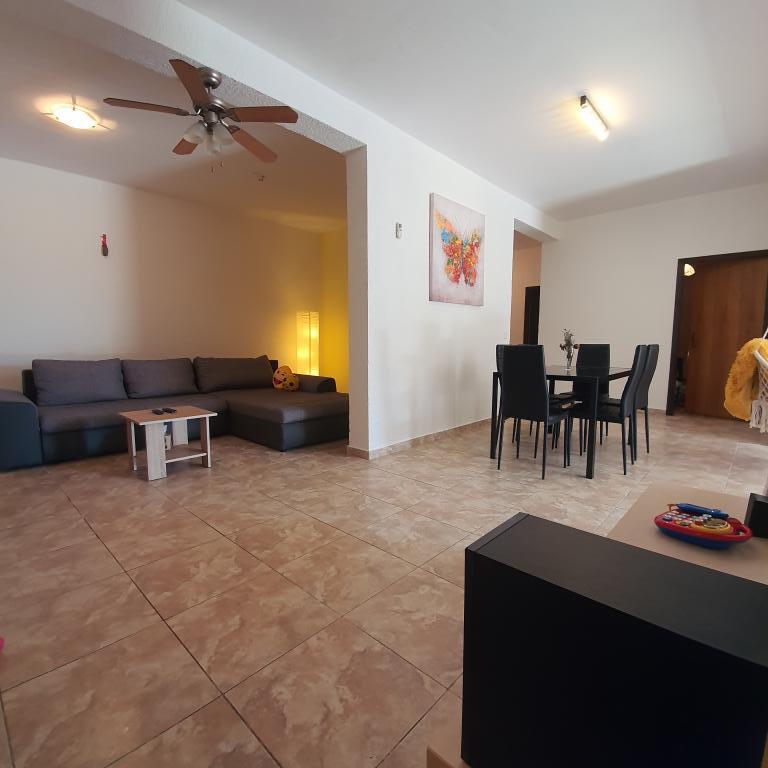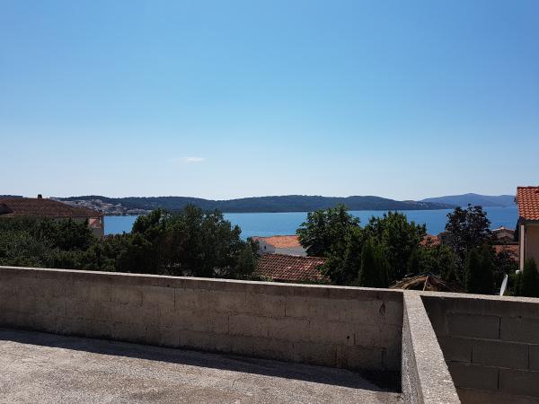 The air-conditioned apartment is located in a quiet street in Okrug Gornji, on the island of Ciovo. It has three rooms, one of which has a separate bathroom; living room with 2 extra beds and kitchen, dining room, bathroom and toilet. The supermarket is 50 meters away, and the beach about 250-300m. Nearby there is a post office, pharmacy, restaurants ... The airport is 7km away. // The sea view is for the most part if you go up the stairs to the garage, or floor \\ // We can accommodate up to seven people. :) \\ Discount for longer stays. For all other information, contact us via the contact form, to which we will respond as soon as possible. We are looking forward to your arrival :-)