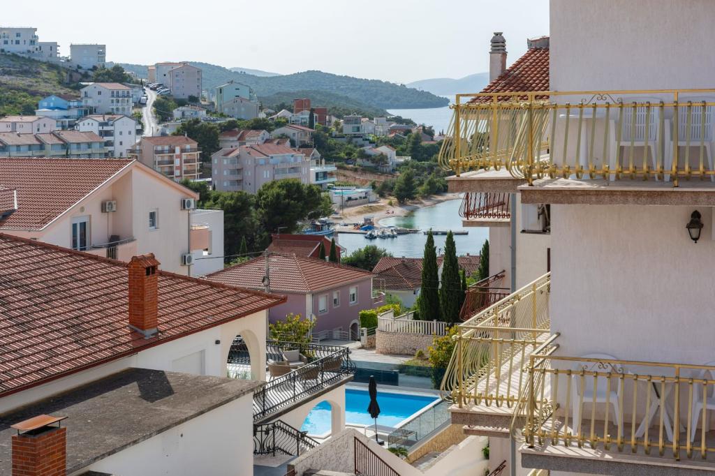 Apartment Summer Memories is a spacious and modernly furnished apartment on the 2nd floor of a building with a sea view, 15 minutes by car from the international airport. The apartment is located near beautiful pebble beaches that stretch all the way to the old town of Trogir. The nearest beach is a 4-minute walk away. The apartment has a balcony where you can enjoy your morning coffee and the sea view. It has 2 bedrooms, one of which has the option of connecting 2 beds into a double bed. The apartment has 2 air conditioners. In front of the building you have secured parking for your vehicle. Nearby are: a supermarket, cafes and restaurants on the beach.