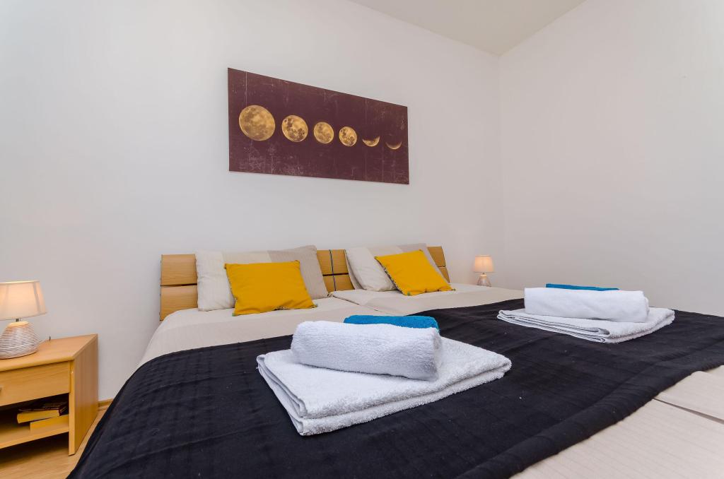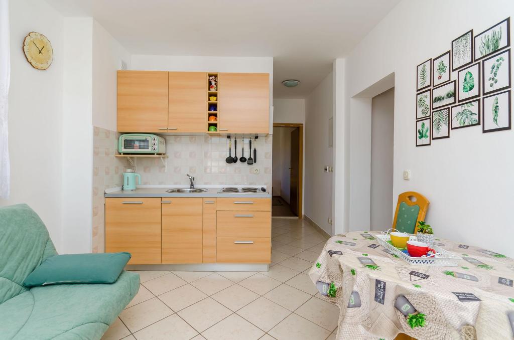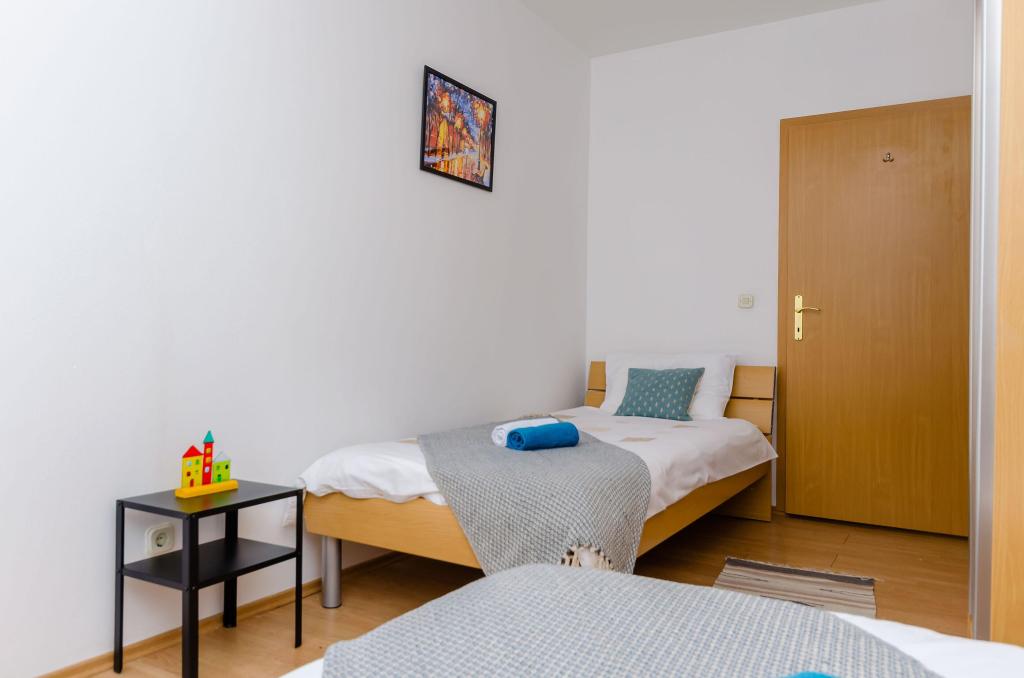 This comfortable two-bedroom apartment is ideal for families, couples or friends looking for relaxing stay close to the sea. The apartment offers free high-speed Wi-Fi and includes one private parking space, ensuring a worry-free stay. Guests are welcomed with a complimentary welcome gift upon arrival. The apartment is located just 200 meters from the beach, only a 5-minute walk, making it perfect for enjoying the sun and sea at any time of day. The apartment is fully equipped for a pleasant stay and features a bright living area, a functional kitchen, and a bathroom with all essential amenities. The surroundings are quiet and suitable for rest, while still being close to shops, cafes and restaurants. Additional amenities include air conditioning, a flat-screen TV, clean bed lines and towels and a balcony/ terrace.