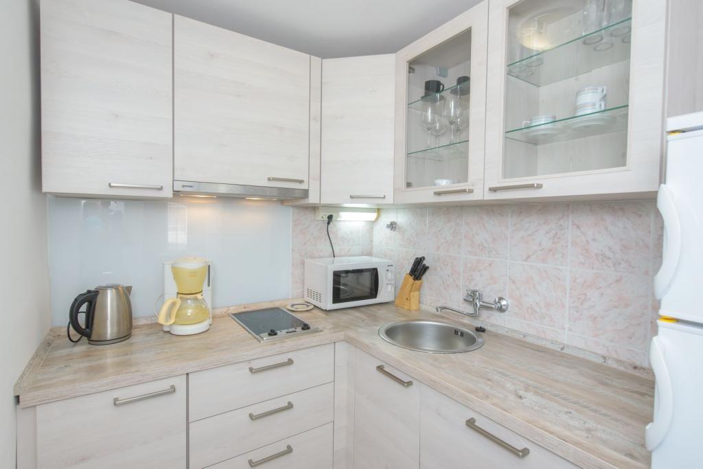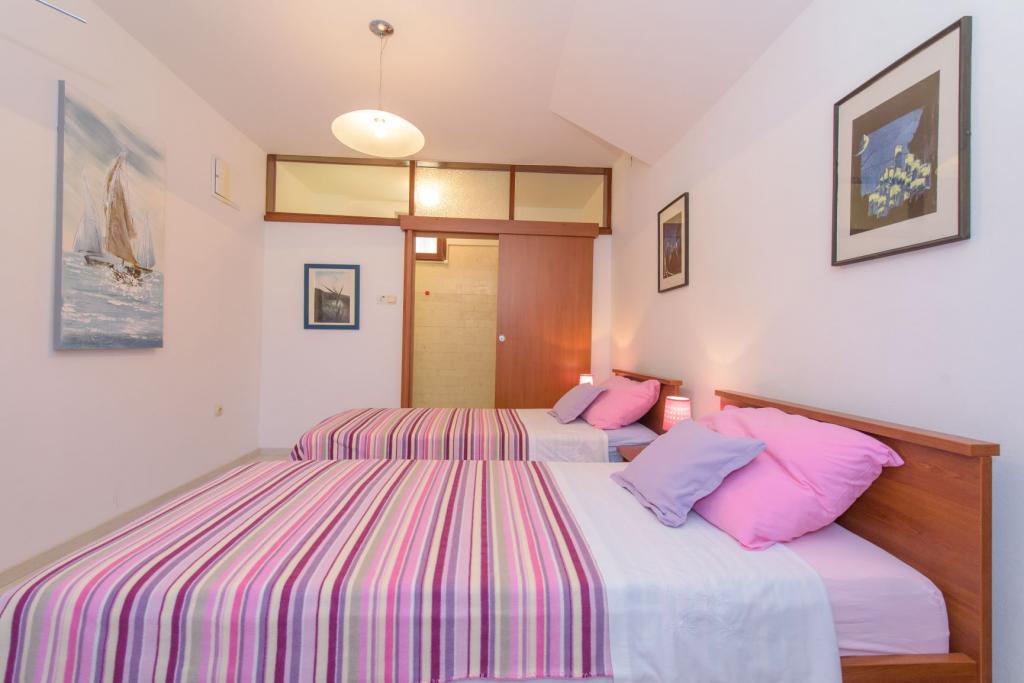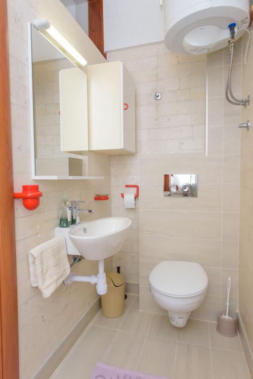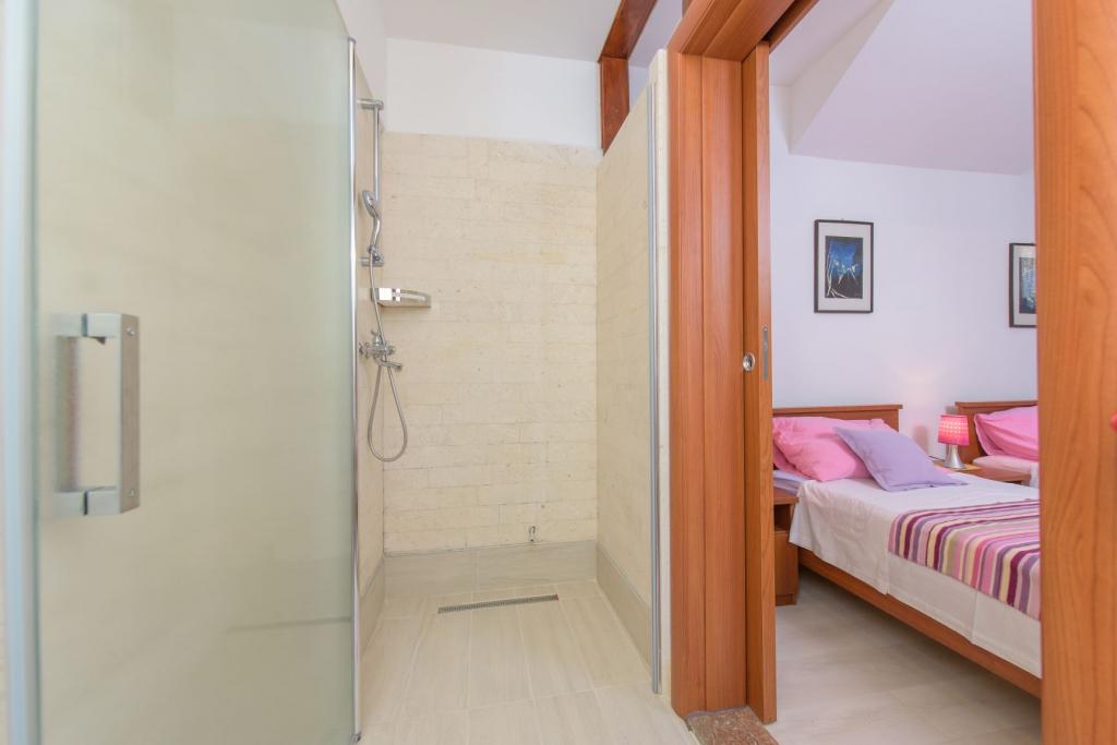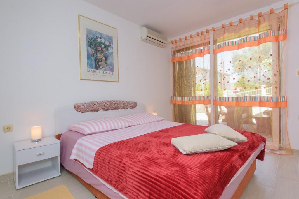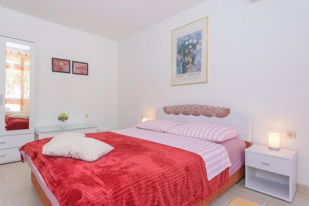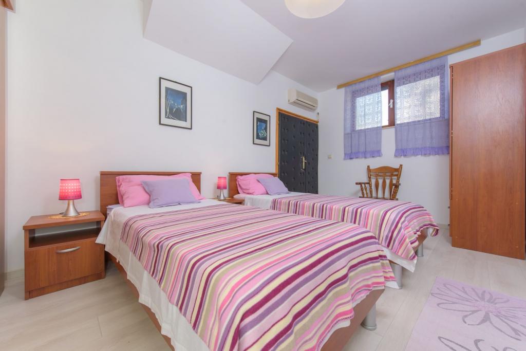 The house with the apartment on the ground floor and driveway paved road length of 50m. with only two houses located in a quiet area. Comfortable apartment with 2 bedrooms and 2 bathrooms with 2 WC, living room and separate kitchen and a terrace and parking in the yard. All rooms air conditioned. At disposal and garden shower. Ideal for guests who want peace and quiet in the shade of the garden terrace with no other guests. . The owner lives in the house with a separate entrance and are available for assistance. The facility is located 10 minutes from the beach where numerous facilities (aquva park, water sports, scuba diving, bike, engine, car and boat), there are still quieter beach. Departure to Trogir every 30 minutes by boat. Along the beach promenade about 1500 meters. We organize numerous trips to the surrounding islands and the Krka National Park. Split is only 30 km in addition to road links is also available via shipping lines Airport nearby for those without a car. Note: The apartment is equipped with mosquito nets
