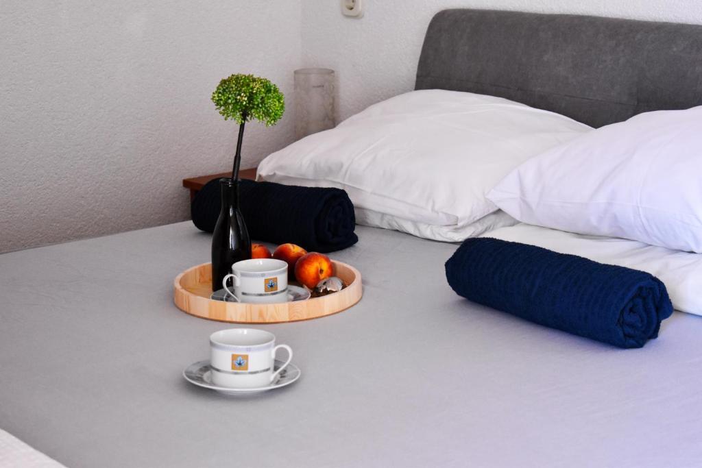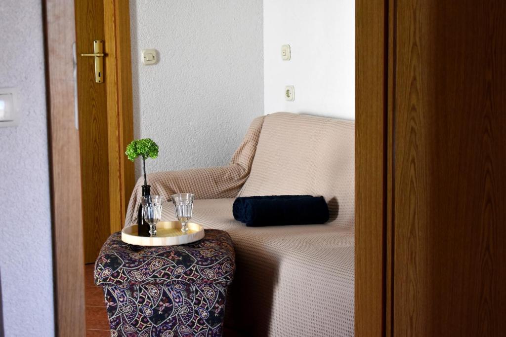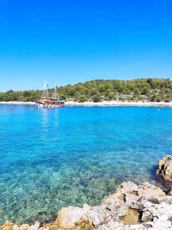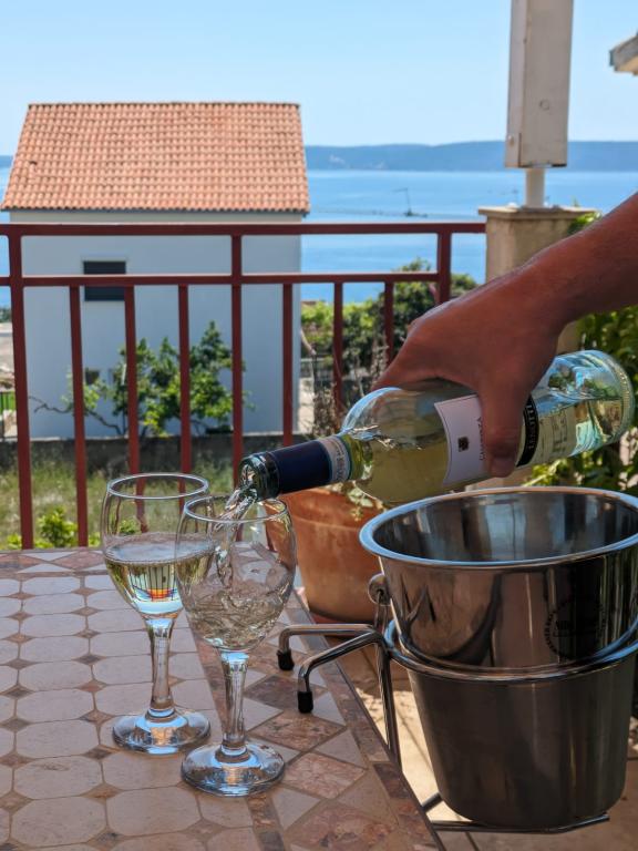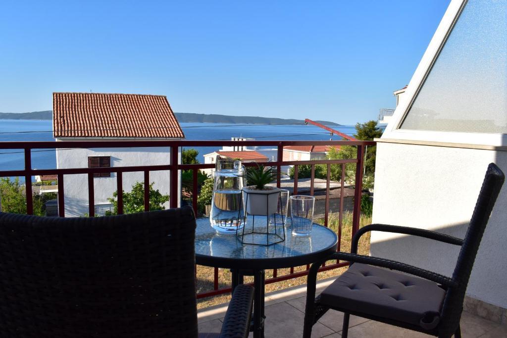 The house is located on the south side of the island of Ciovo (4 km from Trogir), in a quiet street, with private parking in the yard. The apartments are modern and equipped and have a sea view.