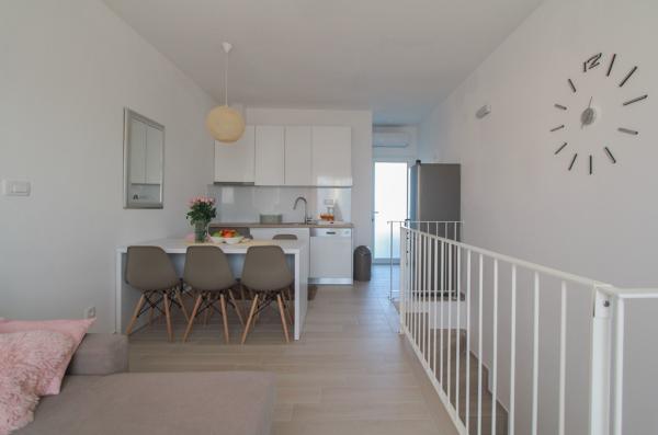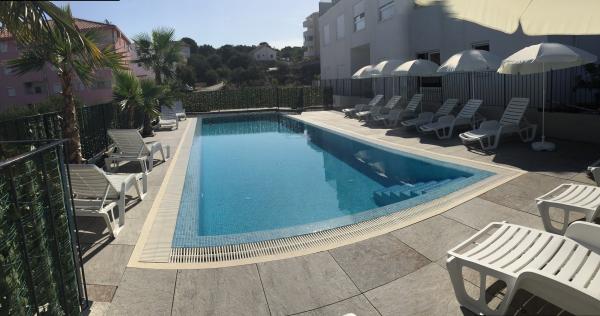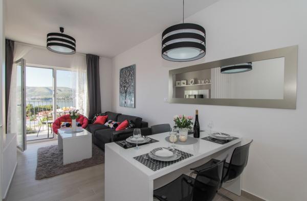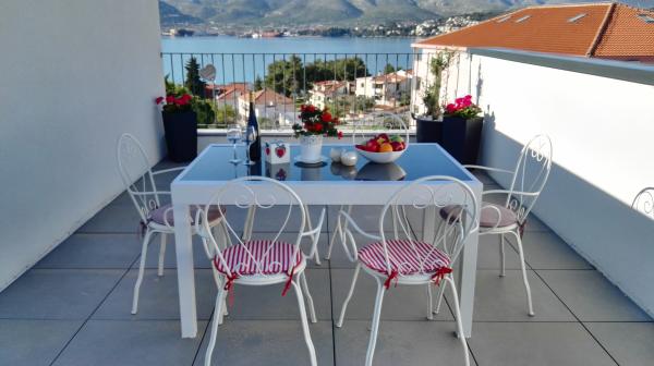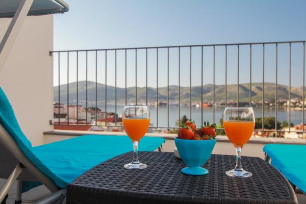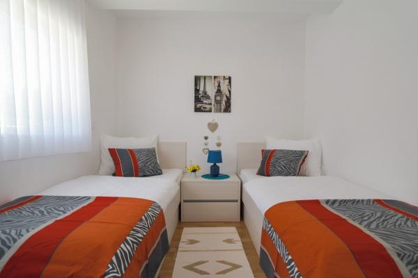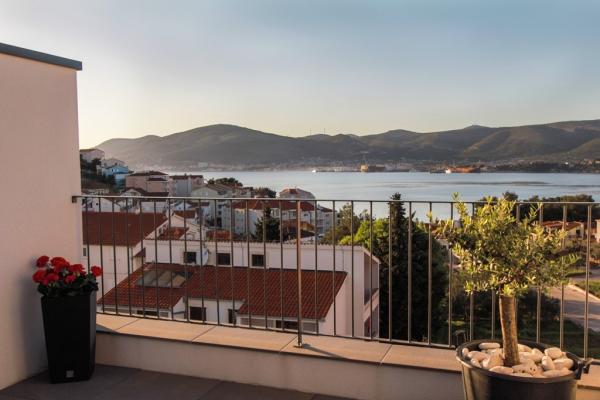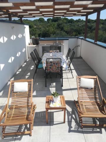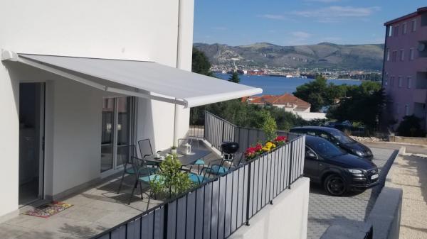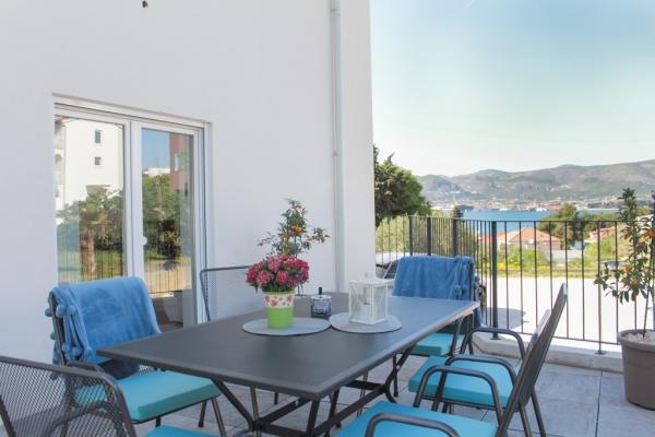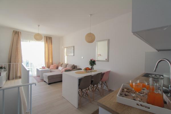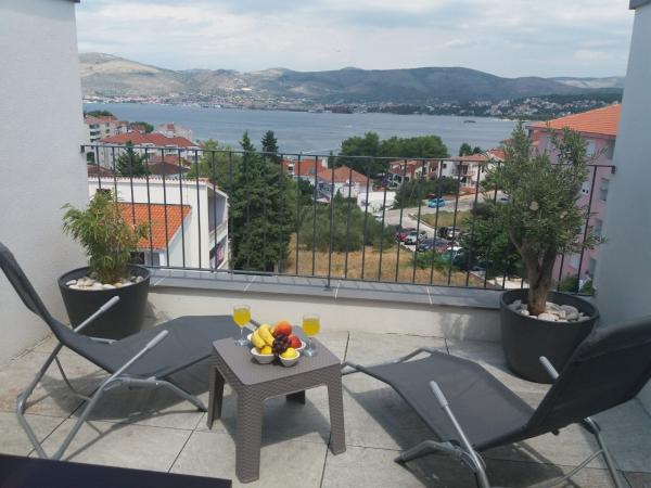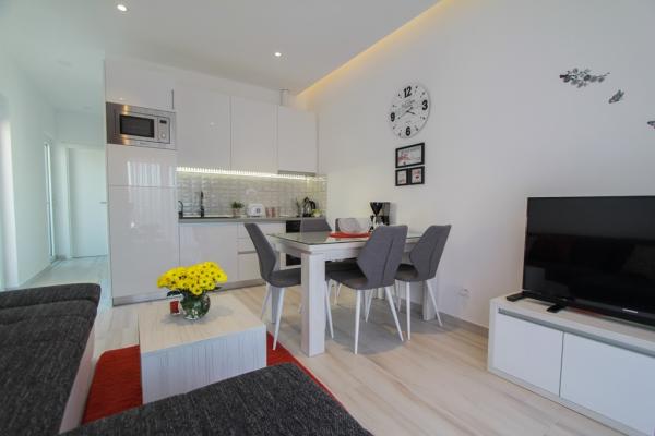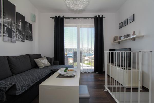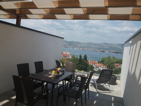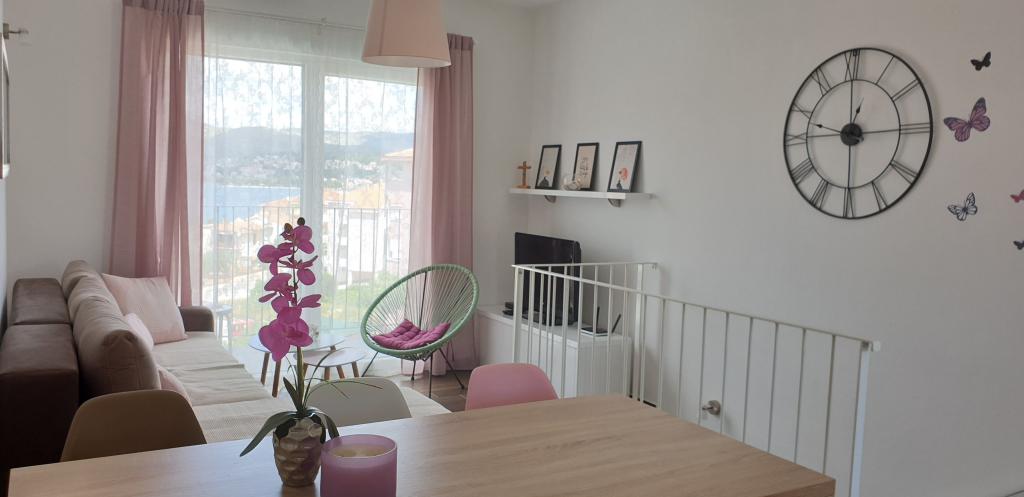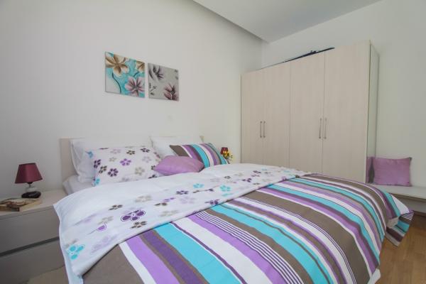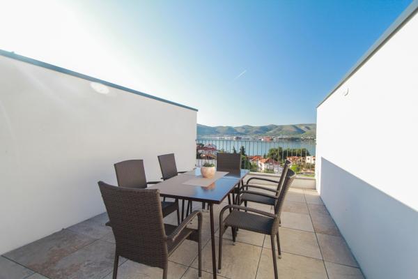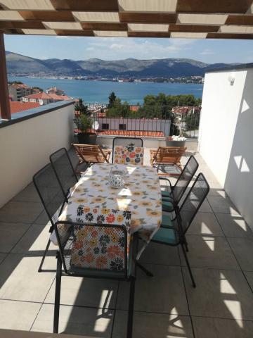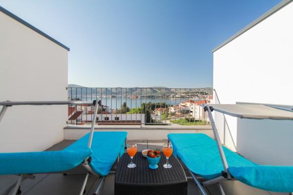 New two-bedroom apartments are located in a quiet part of Okrug Gornji, only 5 minutes walk to the beach in Okruška bay and 10 minutes walk to the beach of Tatinje. . Apartments are modernly furnished, with fully equipped kitchens. The six-floor suites each have their own 25 m2 roof terrace with a beautiful sea view, and there is a barbecue and a seating set. Two apartments on the ground floor also have a terrace with sea view, barbecue and seating furniture. In front of the building is a swimming pool with salt water of 50 m2. In May and October water in the pool will be heated. Beplatan wifi. In the yard of the building is one parking place for each apartment.