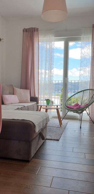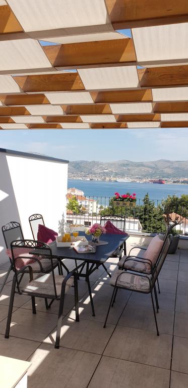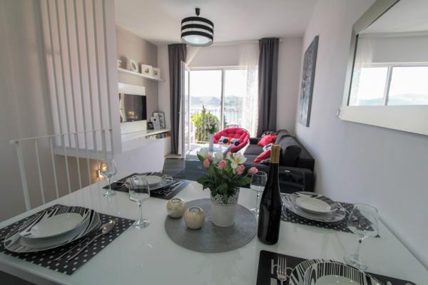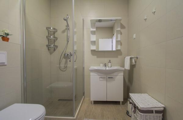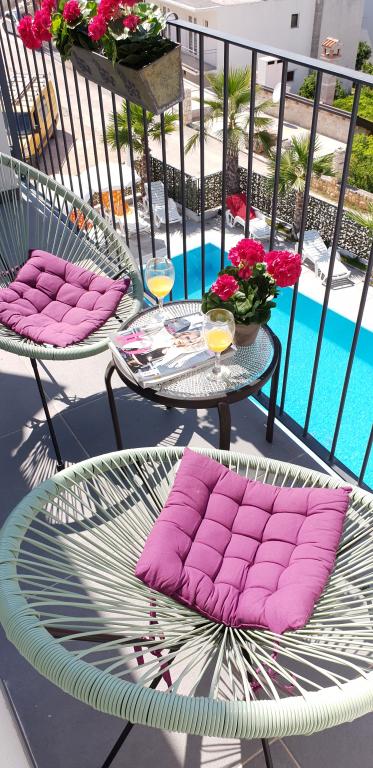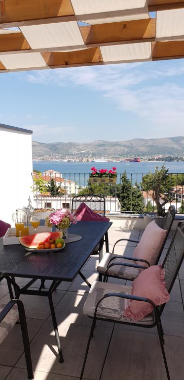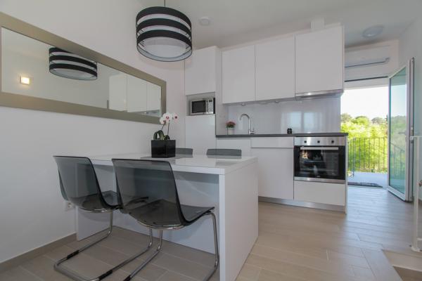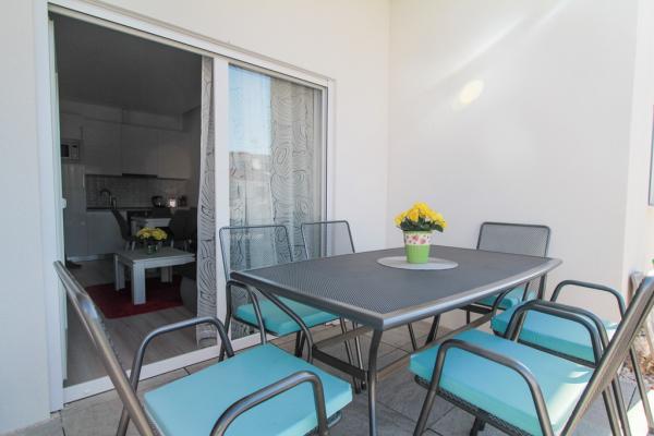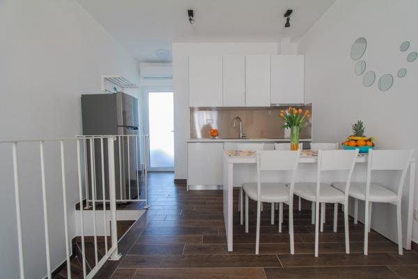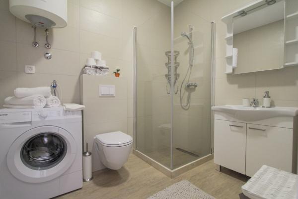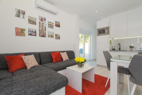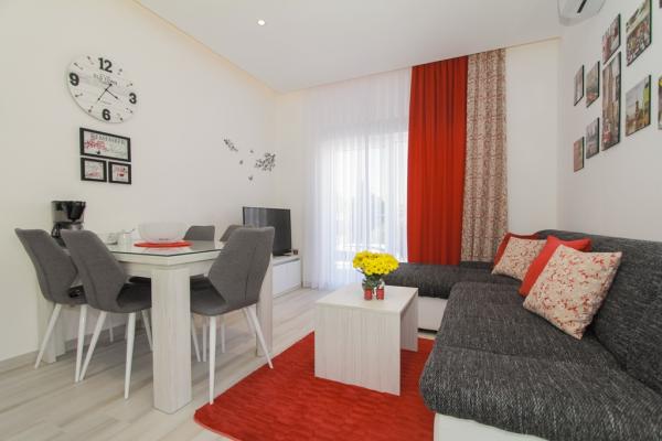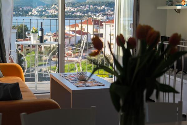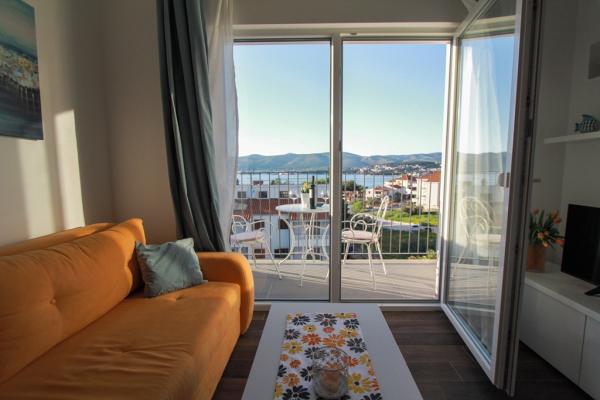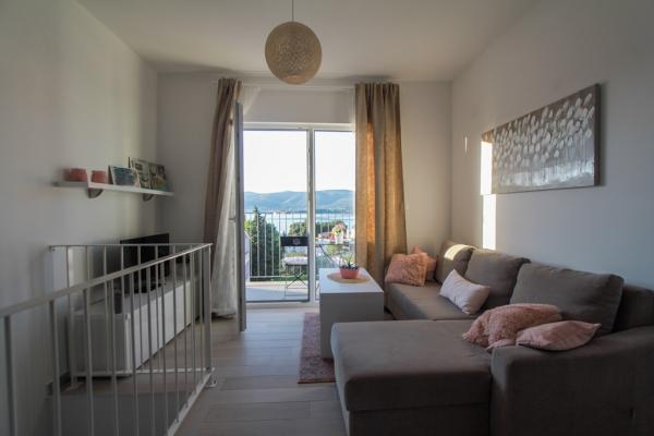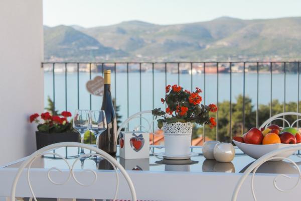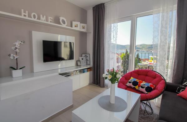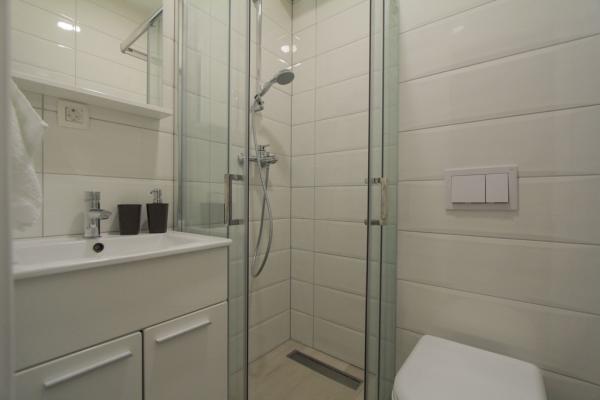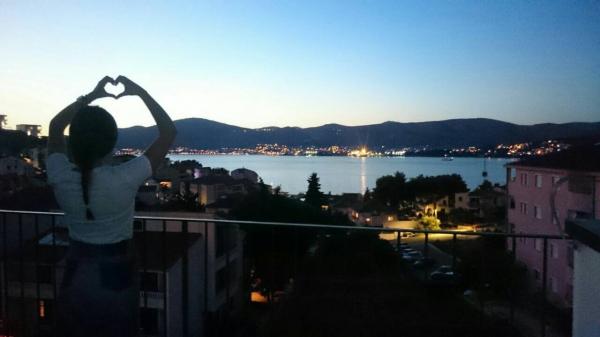 New two-bedroom apartments are located in a quiet part of Okrug Gornji, only 5 minutes walk to the beach in Okruška bay and 10 minutes walk to the beach of Tatinje. . Apartments are modernly furnished, with fully equipped kitchens. The six-floor suites each have their own 25 m2 roof terrace with a beautiful sea view, and there is a barbecue and a seating set. Two apartments on the ground floor also have a terrace with sea view, barbecue and seating furniture. In front of the building is a swimming pool with salt water of 50 m2. In May and October water in the pool will be heated. Beplatan wifi. In the yard of the building is one parking place for each apartment.
