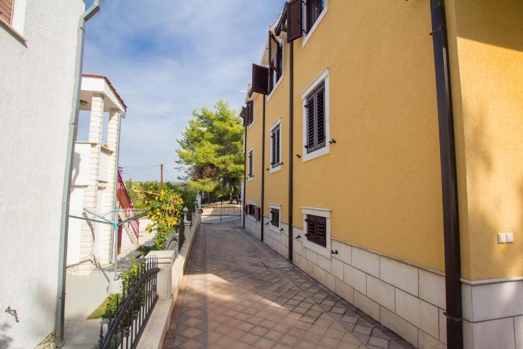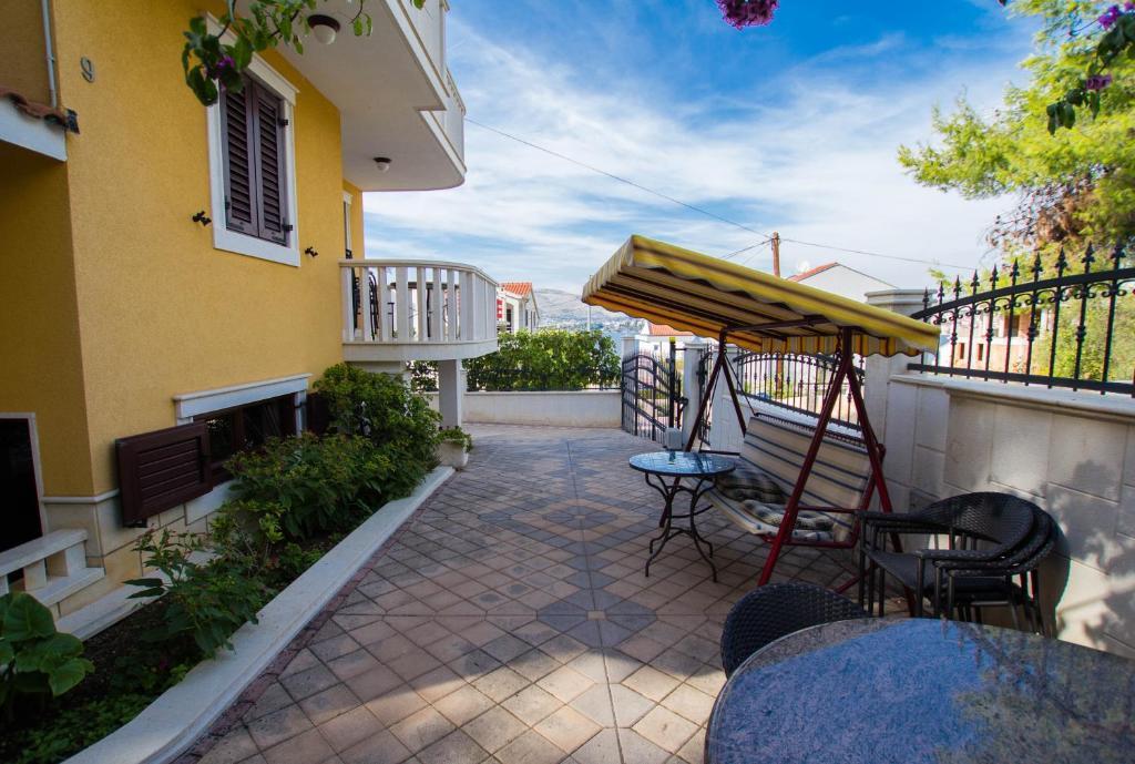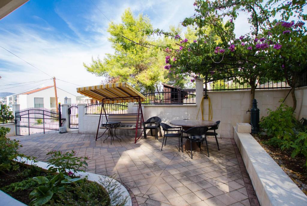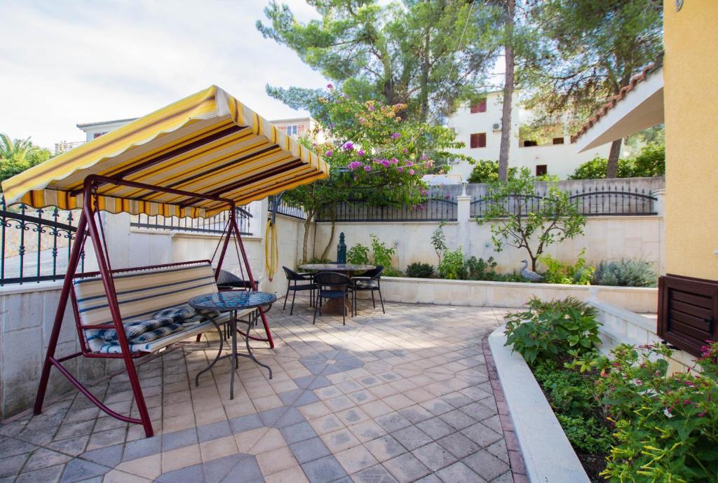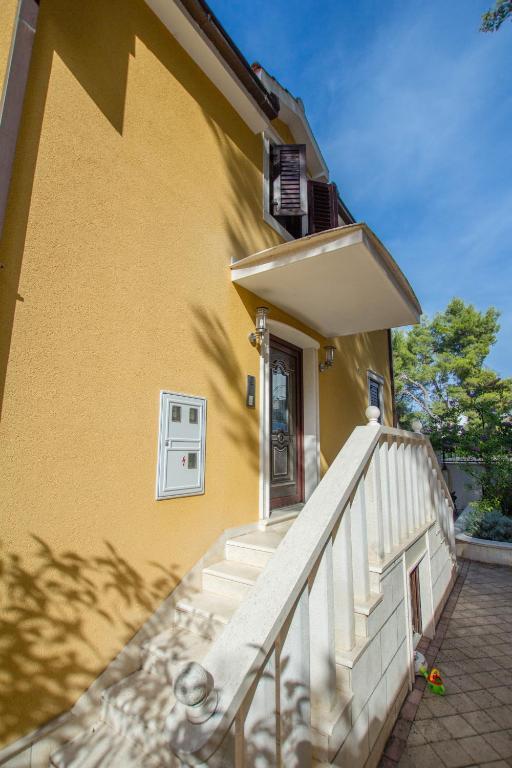 Apartments Anika 1 and 2 are located on the island of Ciovo in a quiet area just 50m from the sea. The property is a 5-minute walk from the first restaurants, shops and entertainment venues. The apartments are located on the 2nd floor for which guests have a separate entrance. Each apartment consists of two bedrooms and a bathroom. Both rooms are air-conditioned and have access to terraces overlooking the sea and the forest. Rooms also include TV along with satellite television and unlimited Internet access. Each apartment also has its own kitchen, which is equipped with cutlery for 6 people, a fridge, a kettle, an oven and everything you need in the kitchen. Parking is included in the price. At your disposal is a pavilion under which there is a grill and a large table for 12 people ideal for joint meals and socializing. There is also a swing under the pavilion and a small swing for children.