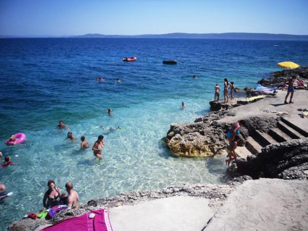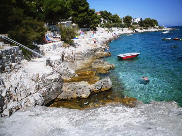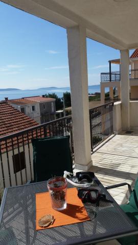 The apartments are located in a family house only 15 m from the beach in the quiet town of Trogir on the peninsula Ciovo only 5 km from Trogir and 10km from Split airport. The property offers 2 air-conditioned apartments with an attractive sea views with private balconies, free parking and separate entrances. Excellent position - second row to the sea on the south side of Ciovo is surrounded by beautiful beaches and crystal clear sea lit by even 2,570 hours of sunshine annually. Apartments also offer in addition to free use of flat wi-fi internet, air conditioning and use of outdoor shower and outdoor fireplace negotiated.