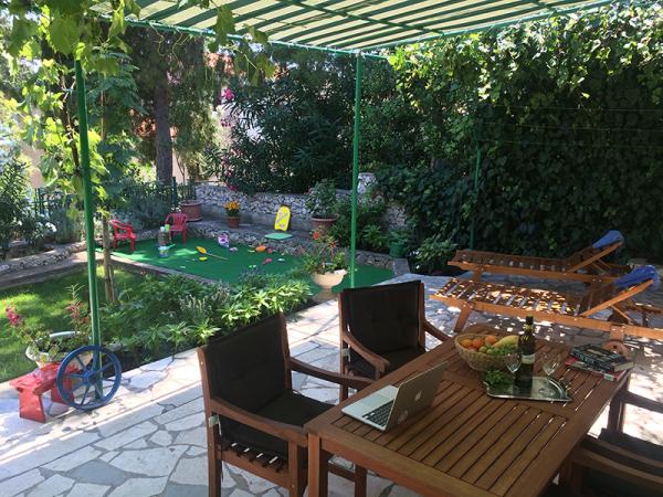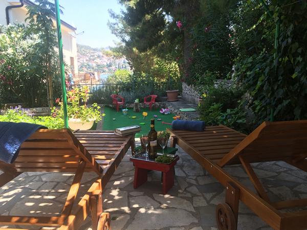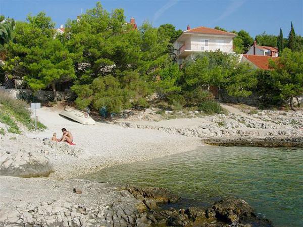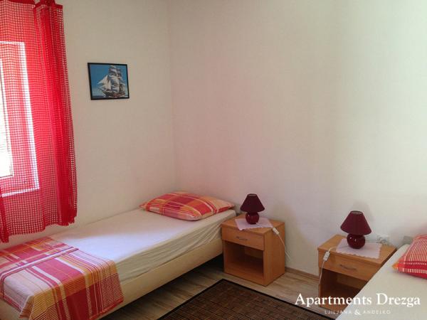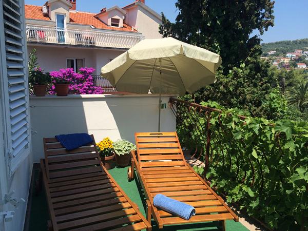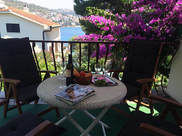 Fully equipped apartments, located second row to the sea. The ground floor apartment has two bedrooms and the upstairs apartment has 3 bedrooms. Each apartment has its own large terrace. The facility is located 20 m from the beach suitable for small children and non-swimmers. There is a diving school nearby, and 15 minutes walk from the small center with the post office, pharmacy, cafes, shops, doctor and a small market. 4 km from the apartment is Trogir, a city museum under UNESCO protection.
