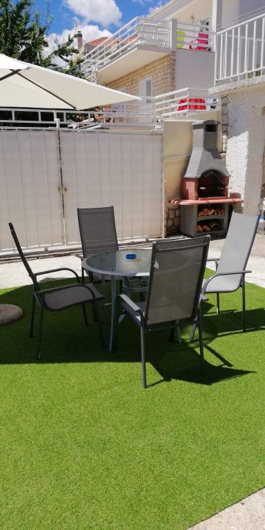 Fully and modernly equipped apartment in a quiet part of the south side of the island of Ciovo, which is connected by bridges. The apartment is located 70m from the beach, completely covered with mosquito nets, there is a grill located in the spacious yard ... cafes and restaurants are within 200m, to Trogir is 5 km, to Split 30 km.