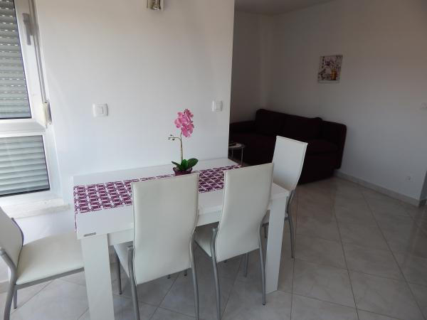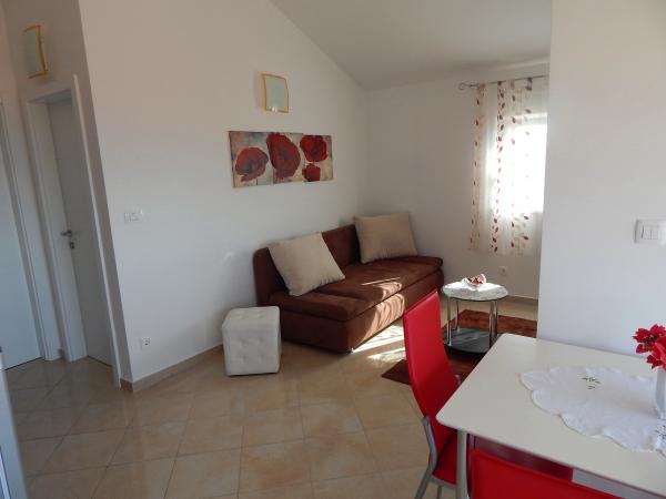 New, air-conditioned, modernly furnished and fully equipped apartments overlooking the sea just 80 m from the sea and the nearest beach. All apartments have free internet access (WiFi), satellite LCD TV. They are located in Okrug Gornji, away from the center the historic town of Trogir 1.5 km. The apartments are for 2-4 persons with one bedroom and a sofa bed, equipped kitchen (stove, oven, fridge, coffee maker, electric kettle), living room, bathroom and glazed balcony. Guests can use the shared washing machine. In front of the property is free parking and barbecue. The nearest restaurant and shop are just 100m away. Bars are 250m away.