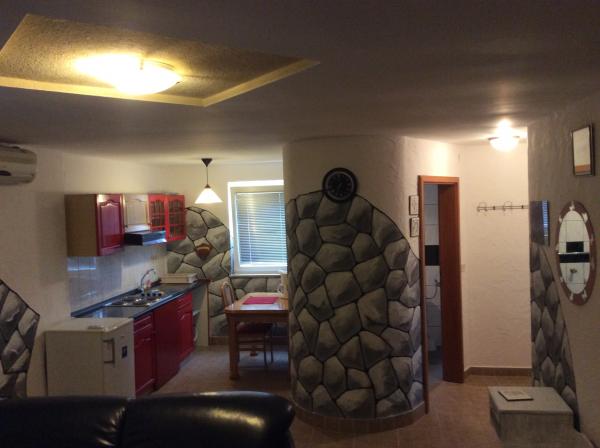 Cozy and nicely arranged family home in the upper district. Through the road is a shop, a beautiful natural beach takes you 5 min. , To the center 10 min. The center has all the necessary contents of the pharmacy, doctor, post office, coffee shops. From the house there is a beautiful view of the sea and the islands. All you need is available 24 hours. Barbecue is also on offer, and the special benefit for the guests of the Big Apartment staying in 6 and 9 months is SKUTER VESPA, and 7 and 8 months upon agreement. Car parking is covered, one kind of open garage, so your car pet does not burn in the sun.