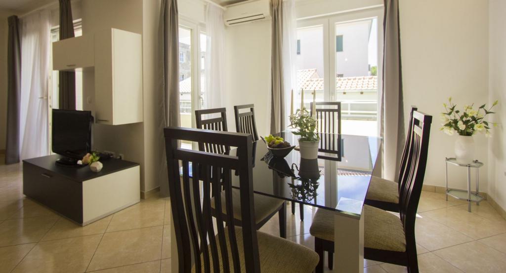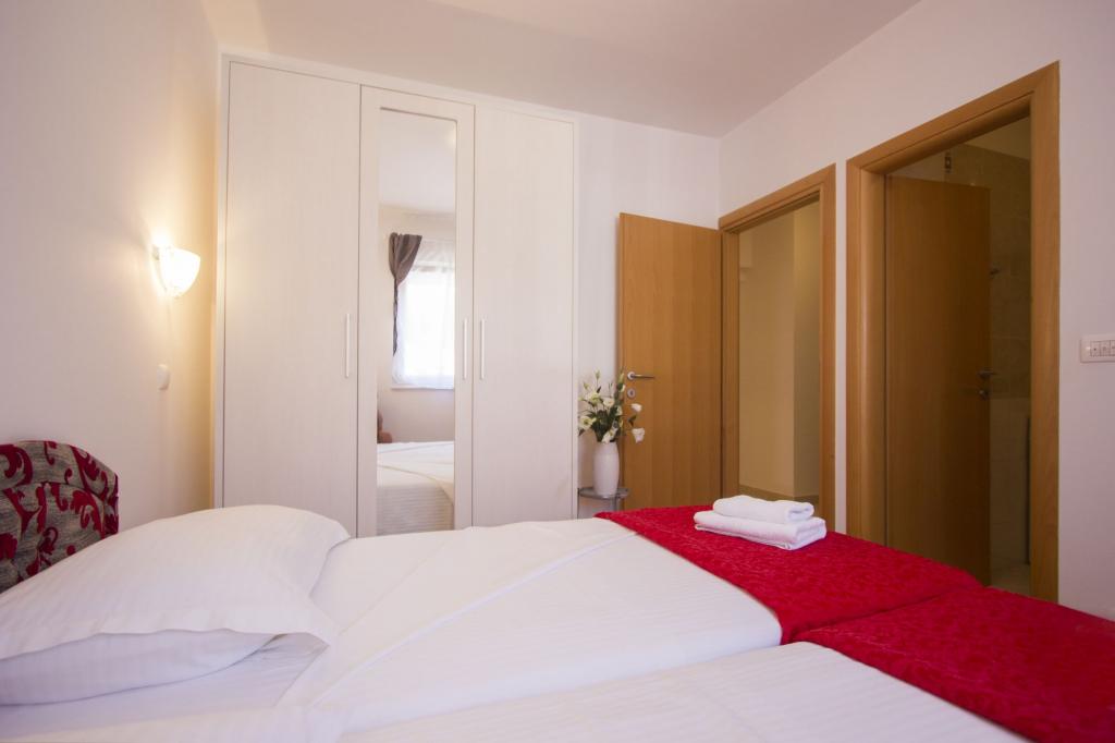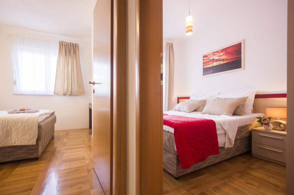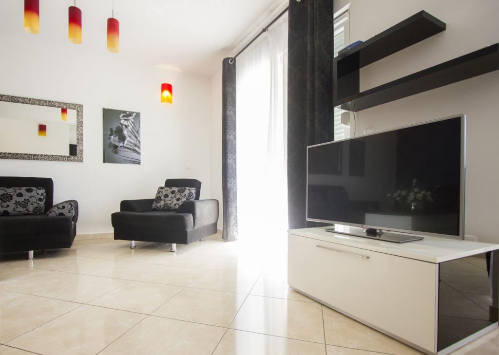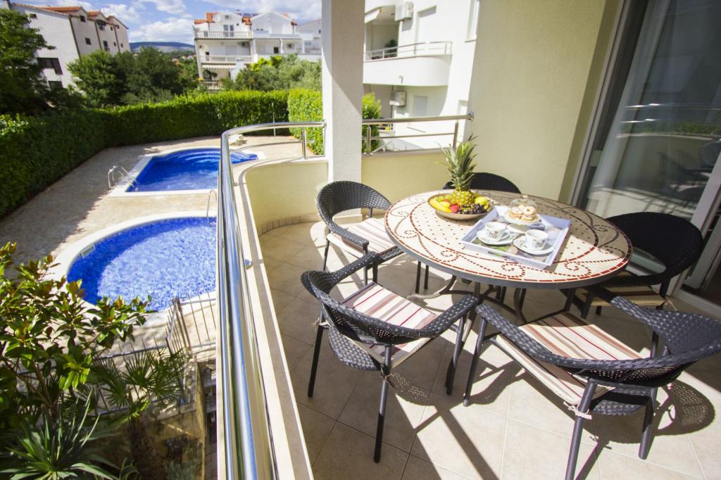 Paradise Apartments are situated in the heart of the island of Ciovo, in the middle of the main beach which is 3 km long, and the distance from the beach is only 70 m. The luxurious and modern newly furnished apartment with 2 pools will ensure a dream vacation. Despite near the beach, swimming pools are ideal for relaxation in an intimate atmosphere, especially for night swimming. Each apartment has a terrace and most have a sea view. In the environment of the facility except the pool and garden, there is a large parking lot (each accommodation unit has one parking space). The garden is suitable for joint meetings with the grill for a pleasant stay in our apartments.