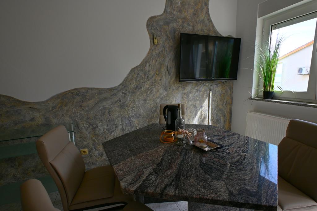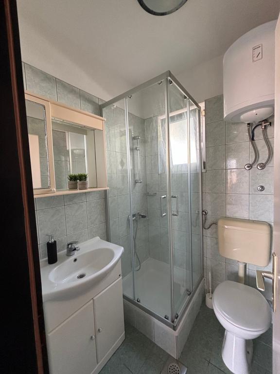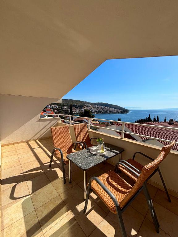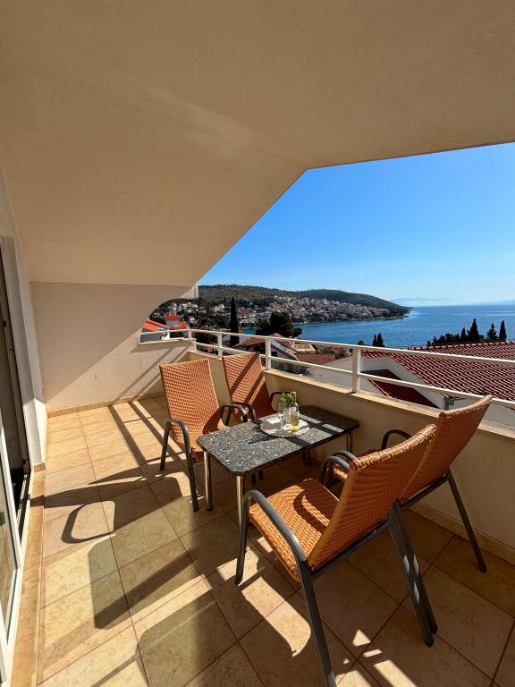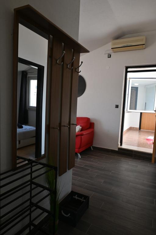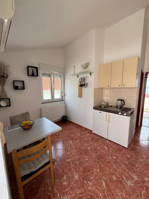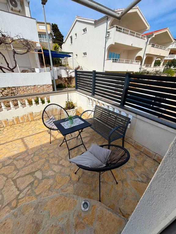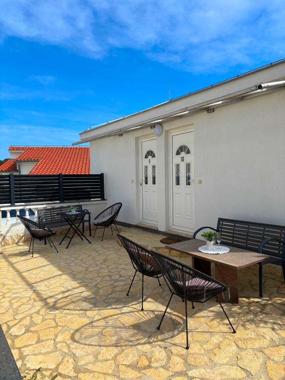 Beautiful apartments on Ciovo with a beautiful sea view Our house on the island of Ciovo is located just a 2-minute walk from the beach and offers an incredible view of the Adriatic Sea. Located in a quiet environment, it is perfect for anyone who wants to relax with the sun, sea and privacy. The facility consists of 11 apartments - 5 larger and 5 smaller, and one special apartment with a private pool. Each apartment has its own terrace, where you can enjoy beautiful sunsets and fresh sea air. The apartments are modern and fully equipped, with kitchens, air conditioning, free Wi-Fi and all the necessary amenities for a pleasant stay. There is a parking space in front of the house, so you can park your car without worries. It is ideal for families, couples or anyone who wants to relax by the sea, but also explore the beauties of Ciovo and its surroundings. In addition to enjoying the beach, Ciovo also offers many activities such as cycling, hiking and water sports. Also, nearby is Trogir, a city under UNESCO protection.
