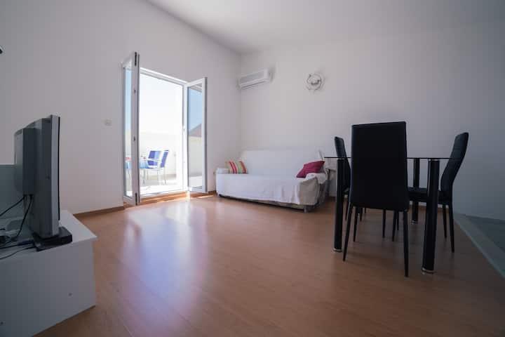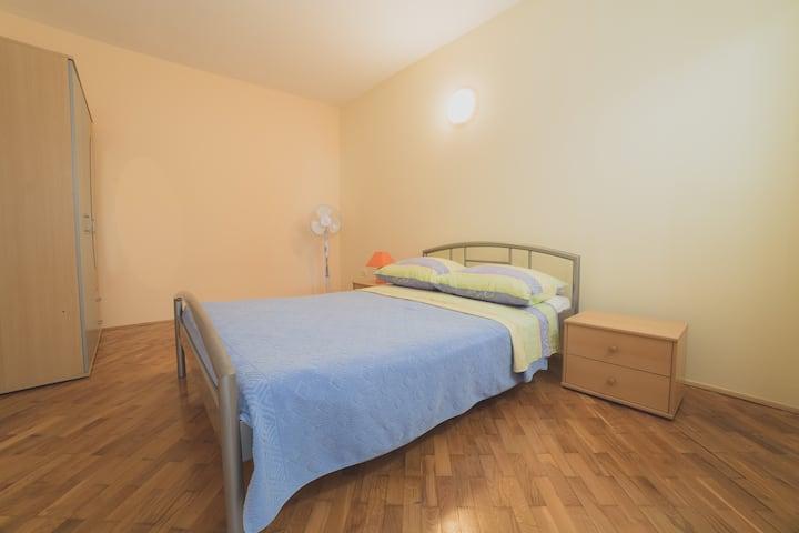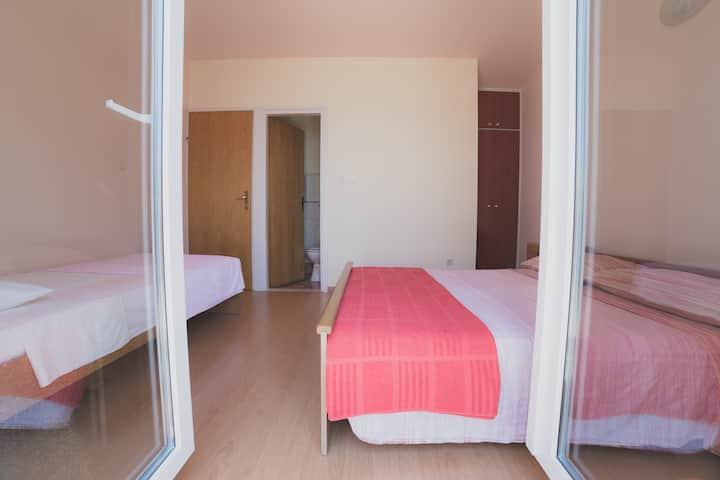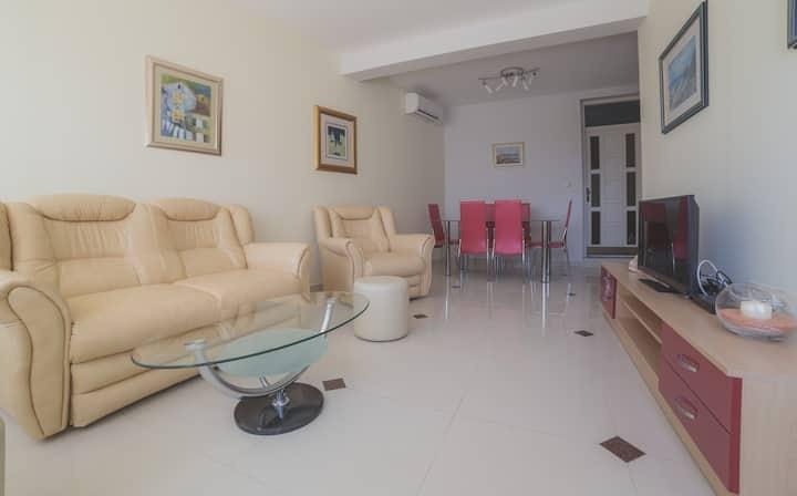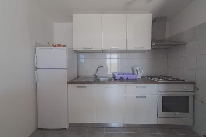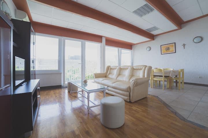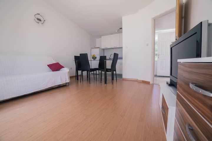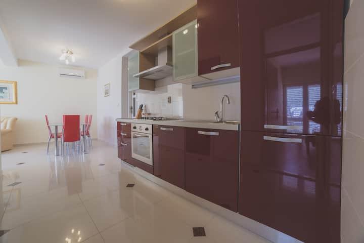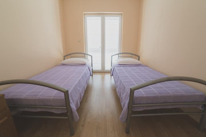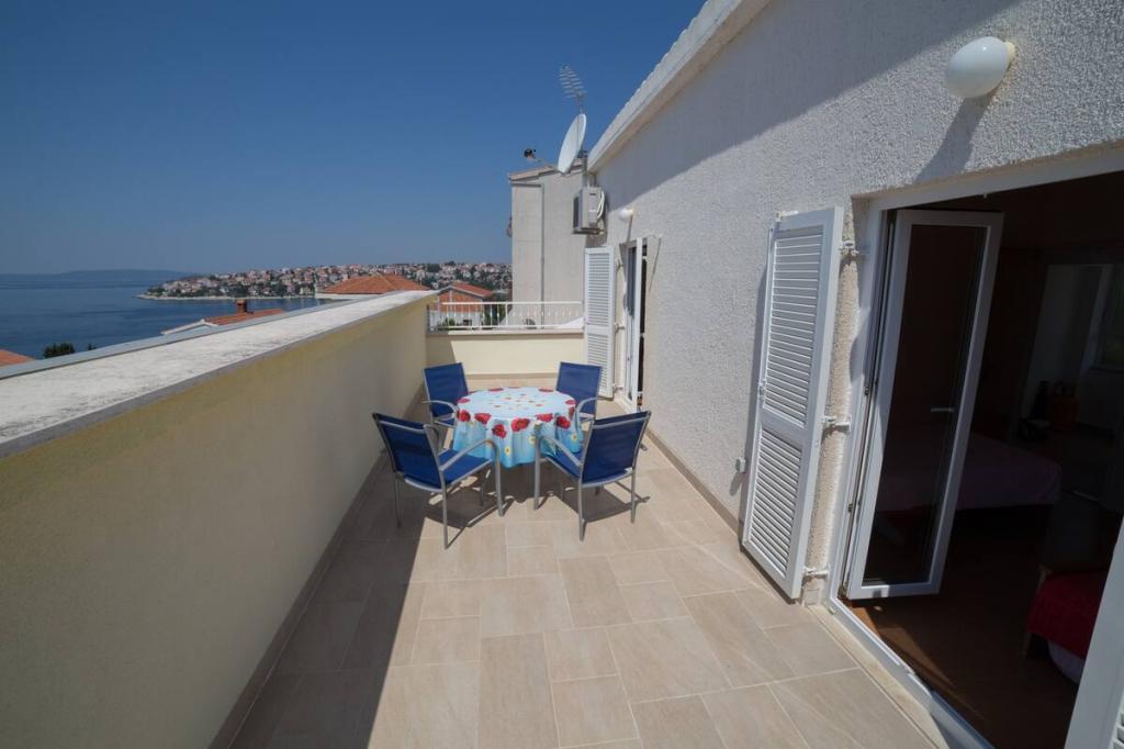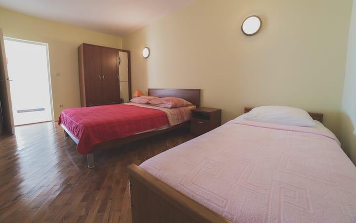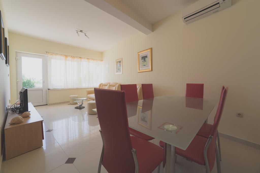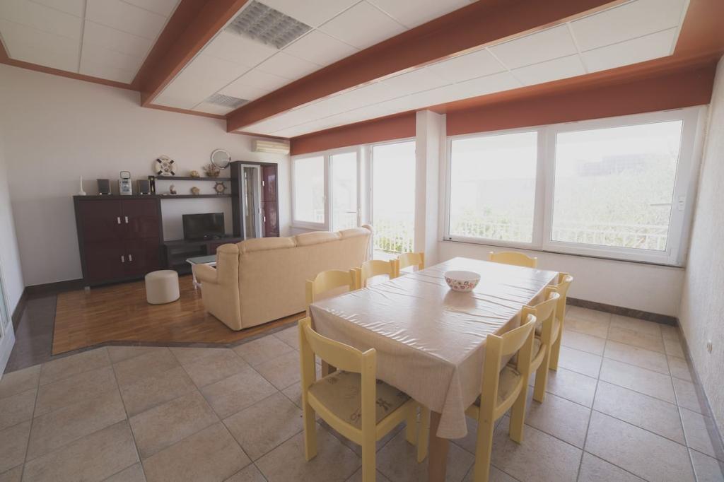 Apartments Sun are located on the southern side of the Čiovo peninsula in Okrug Gornji, Mavarštica bay, and only 5 km from the town of Trogir. The bay, bathed by a judge, with crystal clear sea and an open view of the neighboring islands, creates an ideal atmosphere for relaxation from the hectic everyday life. The island of Čiovo is connected to the mainland by a bridge, and its geographical position presents an ideal opportunity for sightseeing in Dalmatia. Apartments Sun include 4 beautifully decorated apartments prepared for a stay of 2 to 15 people with shared use of a terrace with deckchairs, a pool table and a beautiful view of the sea. Parking is provided. The distance from the sea is 70 m, and the nearest pebble beach is about 200 m from the house.