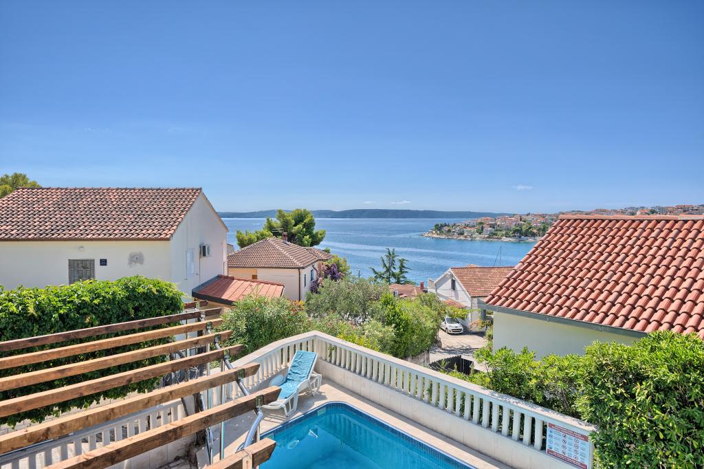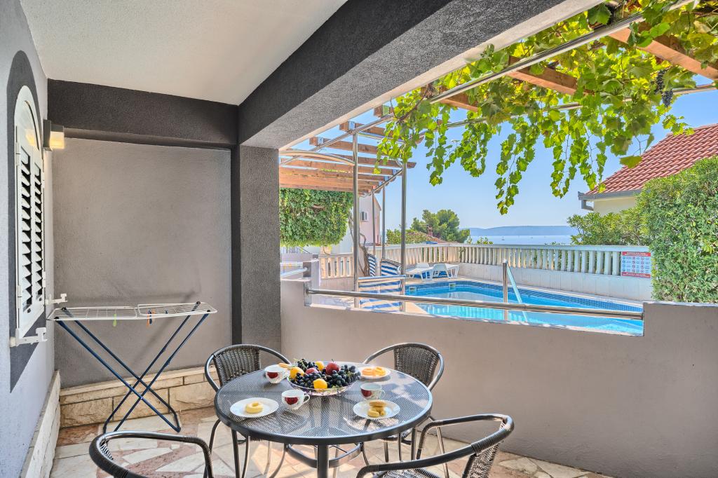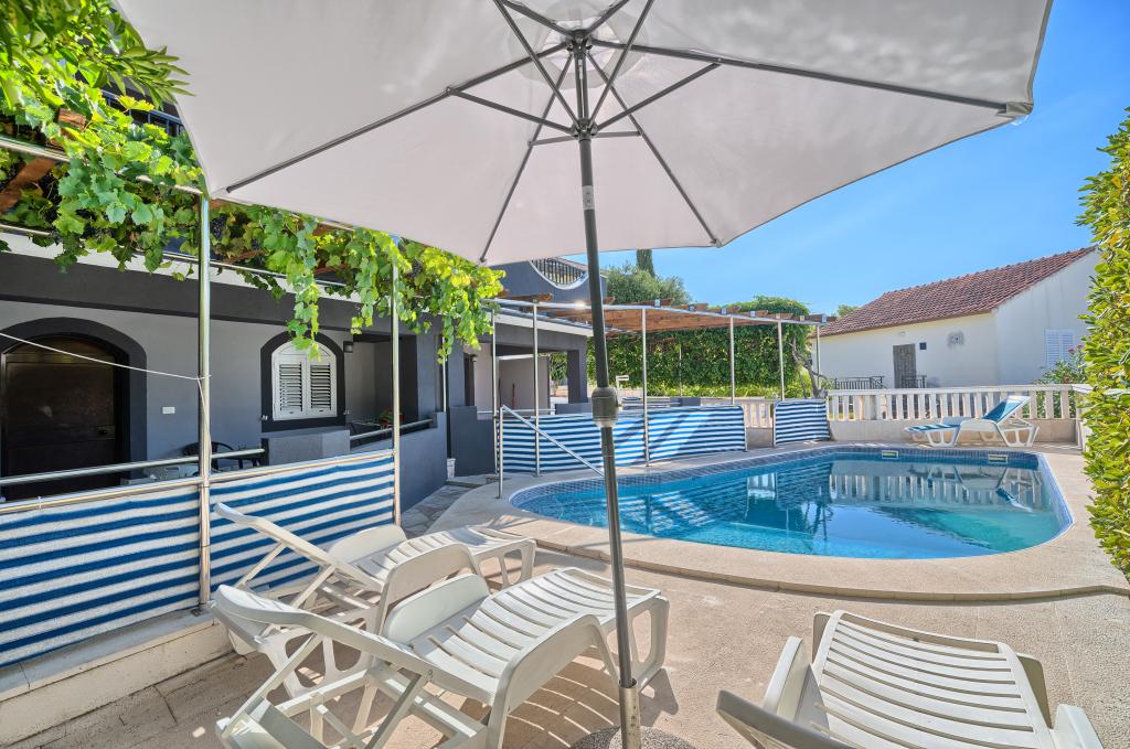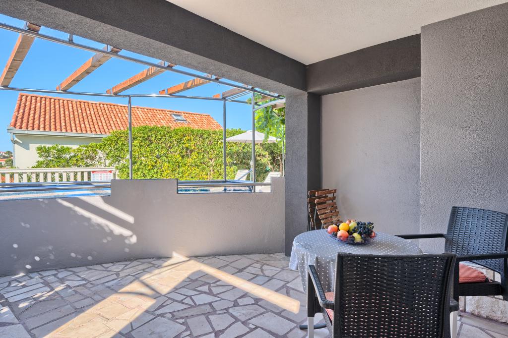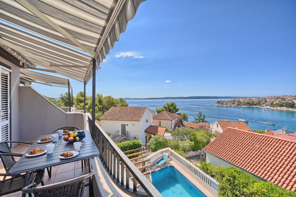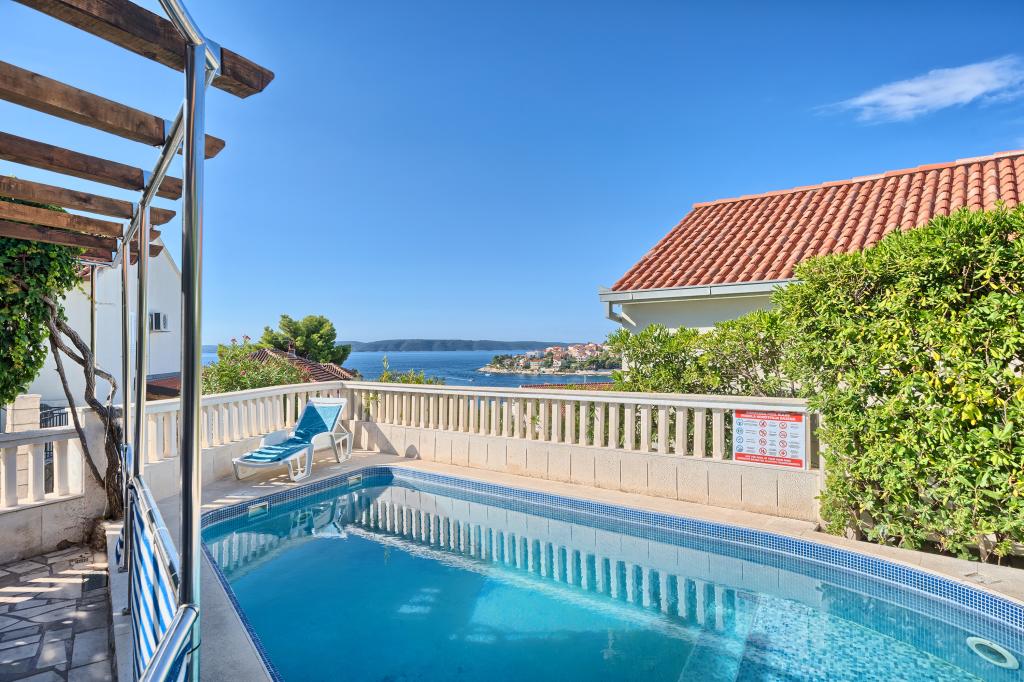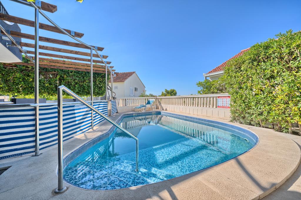 Tičić Apartments are located in the bay Mavarstica which is located on the south side of Ciovo, situated 1.5 km from Okrug Gornji and 5 km from the town of Trogir. New building which offers five suites and App 1 (4), App 2 (5 +1), App 3 (4 +1), App 4 (3 +1) and Apartment 5 ensures that everyone will surely find out for yourself accommodation tailored. All apartments have a beautiful view of the sea, and in front of the house there is a pool that will provide currently refreshment and relaxation. For your car from the rear of the house there is a large private car park where you will be able to freely leave their tin pets and enjoy a carefree vacation.