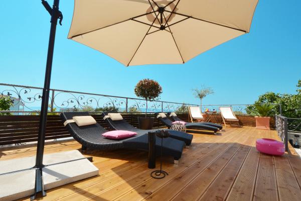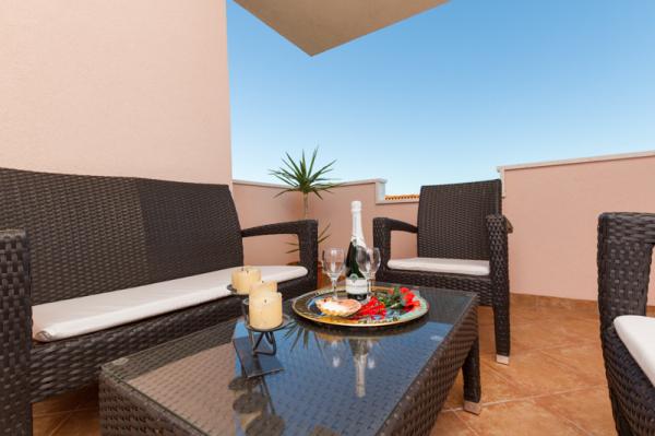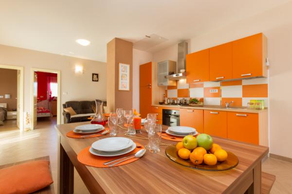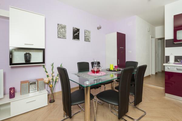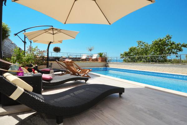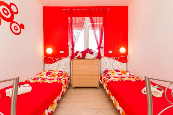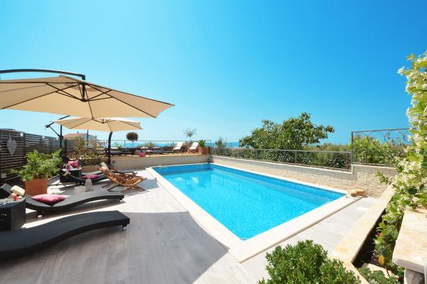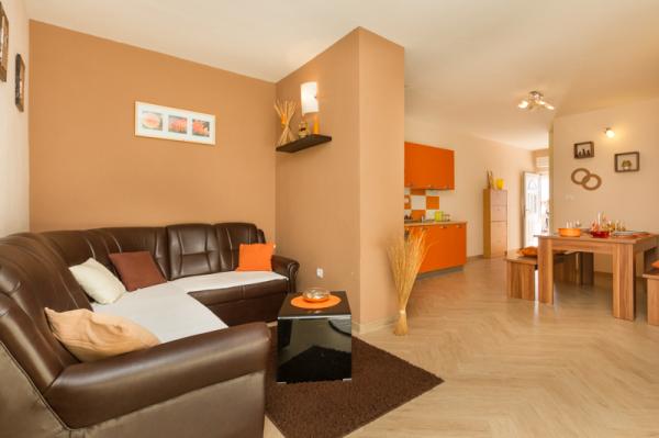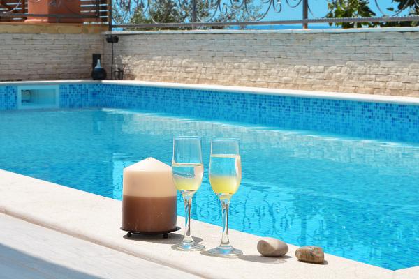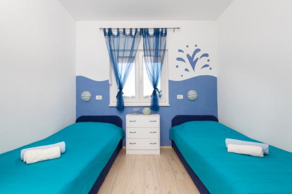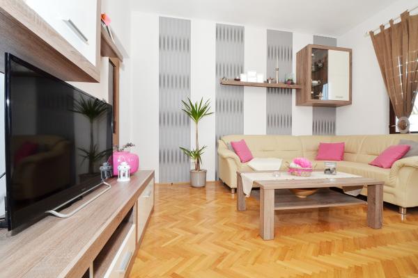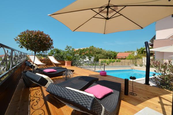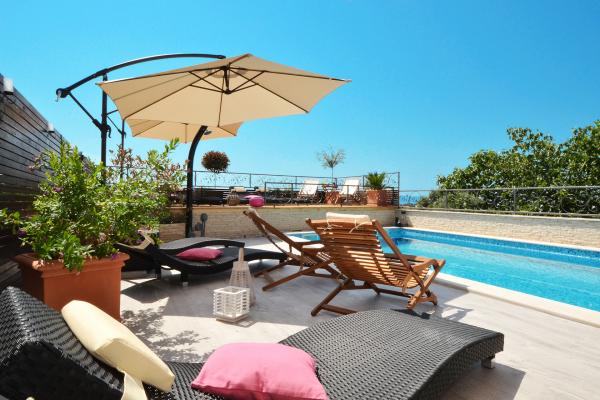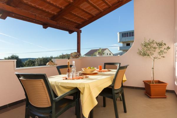 Apartments Tomy are located in Okrug Gornji on the island of Ciovo (connected by the mainland), only 550m from the sea and 200m from the town center. Guests have two three-bedroom apartments and one two-bedroom apartment. In front of the house there is a 35m2 large hydro-massage pool equipped with deck chairs, swings, table and chairs and a barbecue.