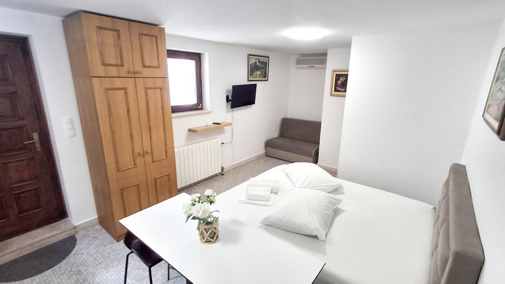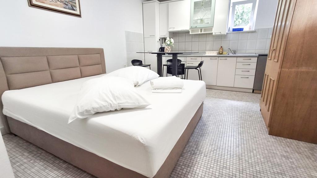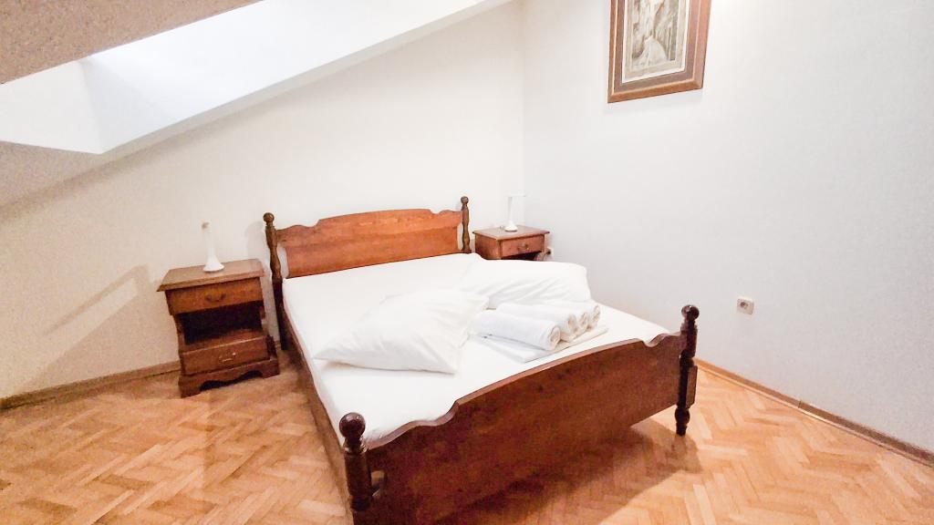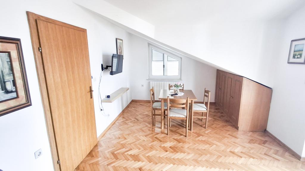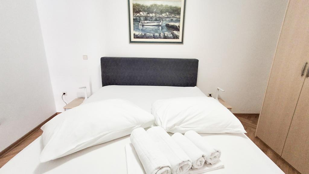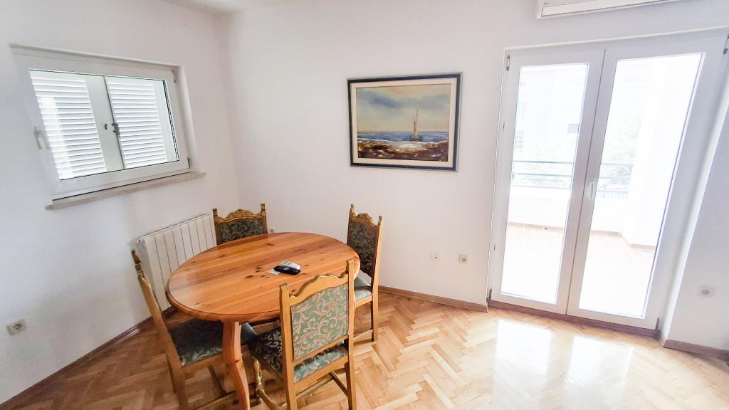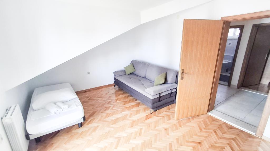 The apartment has a good location and great potential, but it should be well renovated to justify the price of accommodation in the high season, which is €150 per night! First of all, you should invest in internal sound insulation, because the noise between the apartments is unbearable. Usually, walking through the apartment, moving the chairs in the dining room, something accidentally falling on the floor and the like, creates a lot of noise, so a peaceful vacation cannot be expected in this apartment. The apartment is large and spacious, but for such a high price it is really poorly equipped. The air conditioner is loud and is only in one room. The kitchen is dilapidated, poorly equipped. The bathroom is average, nothing special. Furthermore, the apartment has only one bedroom, and the other is actually a living room/dining room in which, instead of a couch, there are some uncomfortable beds, the size of which is difficult for an adult to turn around, let alone get a good night's sleep. The only positive is the location, which is close to the beach, but that's not enough to make it worth the asking price. The host is kind, but he didn't have much of an impact on the complaints made to him about cleanliness and noise.