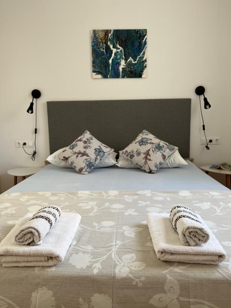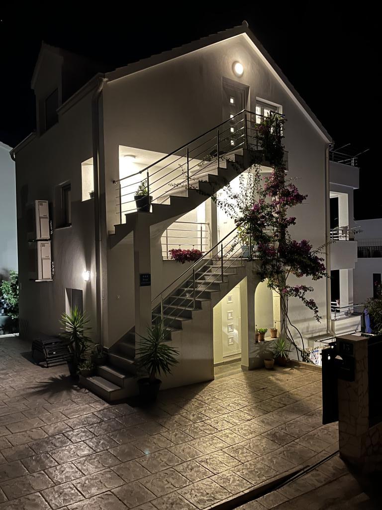 I stayed in the apartment with my husband and two children. They are very comfortable and pleasantly furnished. Clean, equipped with everything you might need, dryer, iron, dishwasher, scissors, etc., and a washing machine that does the job because you can wash everything on the fly and the laundry takes only a few hours to dry. The owner speaks English and you can discuss everything with him or ask for help. Beautiful views from the terrace, spacious and comfortable terraces, mosquito nets on the windows and air conditioning in every room. The heated swimming pool is a hit, the area around the pool is clean and pleasant, and everything is tastefully decorated, beautiful flowers, accessories, lights that look so nice. As for the surrounding area, there is a well-stocked shop nearby, the beach is about a few hundred meters away, and the most popular beach in the area is about a 20-minute walk away. Apart from the beautiful views and proximity to the sea, for me the apartments themselves were very comfortable and I could relax there just like at home. I highly recommend this place!
