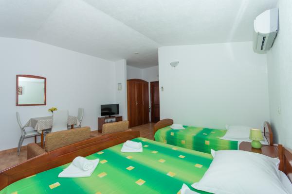 We wish you a warm welcome in the sunny paradise holiday in Trogir. We are located 7 km from the airport "Split" and 3 km from the town of Trogir. In this oasis of beauty and pleasure we would like to introduce pearl "Villa Fumija" which offers luxurious apartments and studio apartments. Forget Radic family offers its guests for years with the recognizable quality of service and hospitality obiteli with many years of experience with. With a "Ville Fumia" offers to all its guests information and organizing catering services to make their stay comfortable and complete "Villa Fumija" is 100 m away from the sea and has private parking for cars and buses.