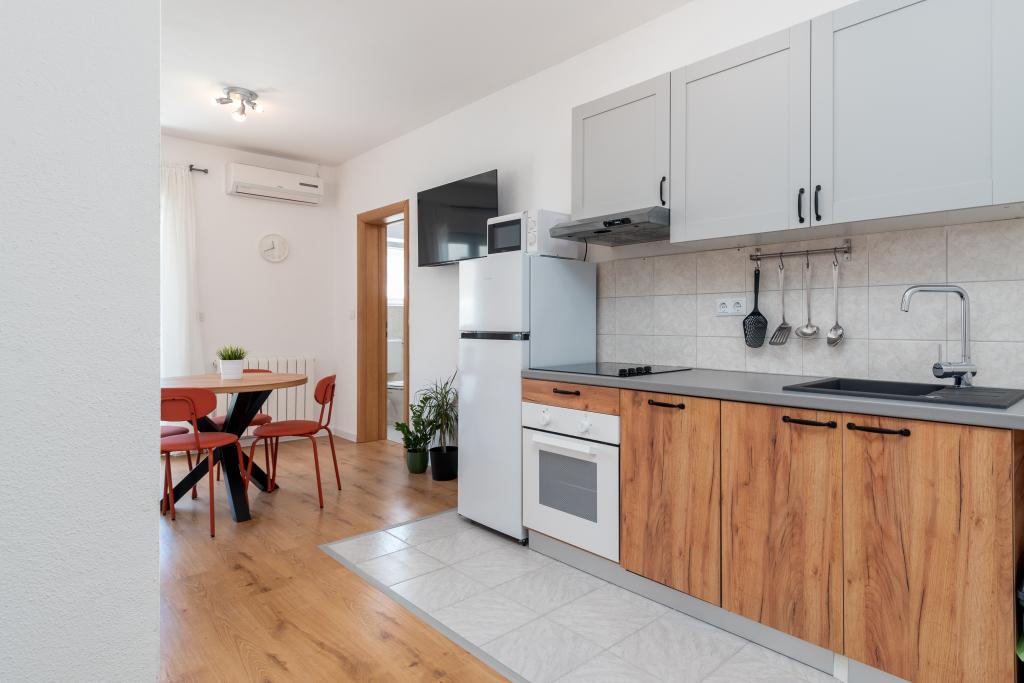 A fantastic apartment in an amazing location. That’s what you get when you book your stay here. The apartment is just 300 meters from the area’s main beach, the Copacabana, so you can be by the sea in 3 minutes with a quick walk from the apartment. And what a beach! It’s over one kilometer-long and offers chances for you to lie back and relax or get involved in some water sports or children’s activities. It really is the beating heart of the area, especially in summer. And choosing to stay in this apartment puts you within a few minute’s walk of all the daytime activities and lively nightlife that makes this place so popular with locals and tourists alike. There are bars and restaurants and markets to enjoy around the area. You’ll also find secluded bays and coves, so go explore if you want to find somewhere a little different. Trogir old town—a place so beautiful it’s protected by UNESCO—is just 2 kilometres from the apartment, a 3-minute drive or 20-minute walk away.