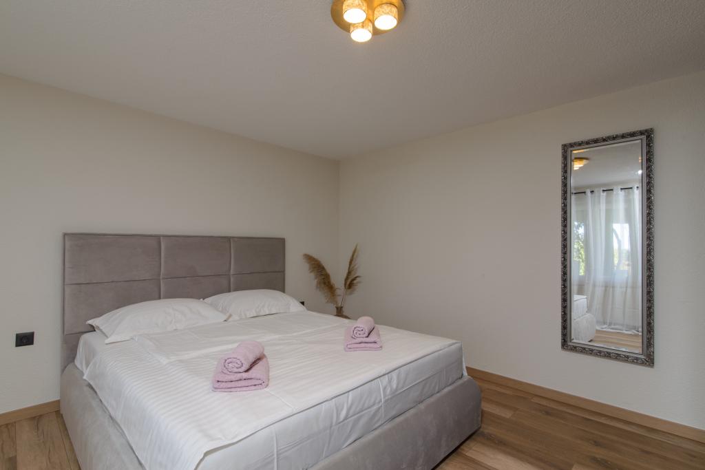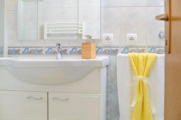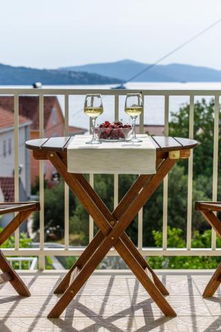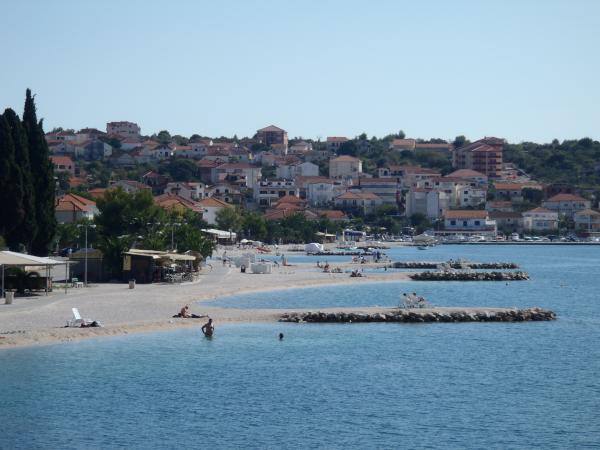 Residential tax is included in price.Welcome drink, towels, sheets and tourist taxes are included in price. The best known and most popular beach in Trogir Riviera is certainly the beach in Okrug Gornji. During the day You can enjoy the Jet sky ride, Parasailing, water skying, windsurfing or hire small boats, speed boats, scooters or bikes for riding along the island or approach to scuba dive center. Every day, You can go to a fish picnic, visit 3 nearby islands included „blue lagoon“ and beautiful fishing place Maslenica on island Šolta. By speed boat trabsfers, You can enjoy natural bays with beautiful beaches and caves on islands Vis, Biševo, Hvar, Brač… Also You can book one day excursions to National park Krka or Plitvice lakes, Međugorje, Dubrovnik, rafting etc.