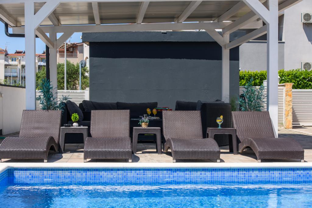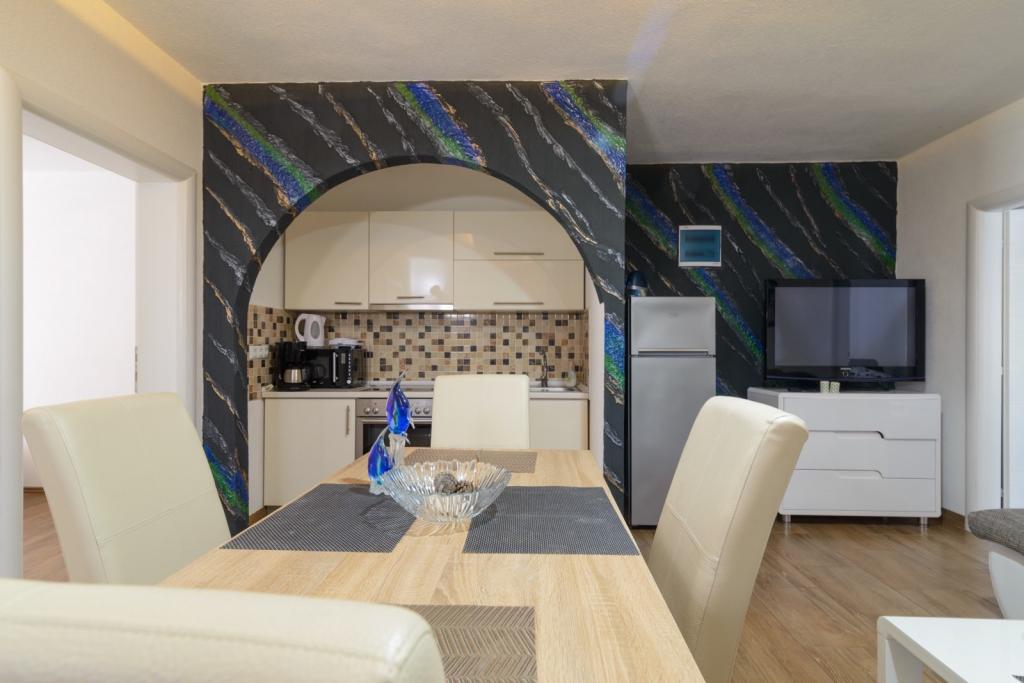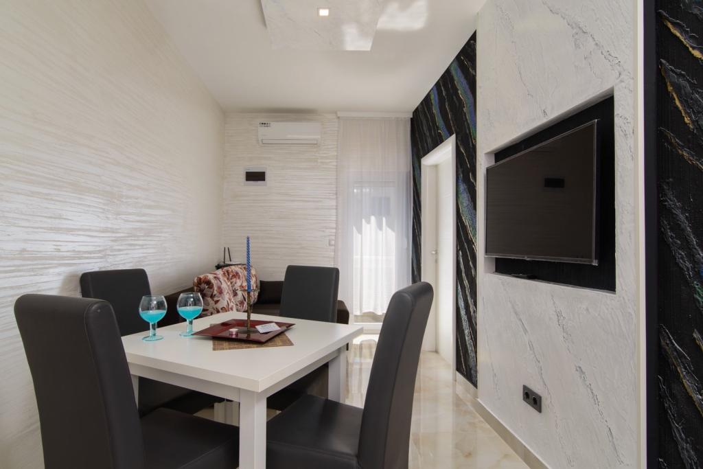 The apartments are located in the newly equipped Villi ET A in the town of Okrug Gornji on the island of Ciovo which is connected to the historical town Trogir. Completely and newly equipped apartments in the beautiful part of Ciovo Island. Only 70m away from the sea. In front of the apartment there is a swimming pool and a large grill. The apartments contain everything you need for a family vacation with children or friends. The villa was built in 2017 and contains seven apartments, all modern and adapted for tourism. The property is a 10-minute walk from the center of the town where you can find: ambulance, pharmacy, post, various brands, drinks with fresh groceries, a range of restaurants and cafes and the famous Copacabana beach. And only 3, 5 km from the center of Trogir you can go by your car, bus or boat. We wish all guests a welcome and pleasant summer.