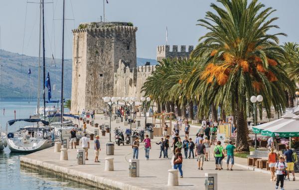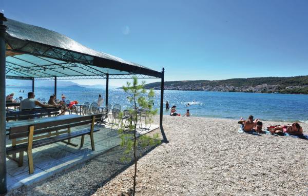 This is a comfortable apartment located on the first floor of the house. Fully equipped and comfortable, has a beautiful terrace with a panoramic view of the sea. The terrace comes to the bathroom, that door is not connected with the apartment. Nearby there are many beaches where you can enjoy the sun or the shade of pine trees, with beautiful clear and blue sea. Be sure to visit the nearby Trogir, a valuable monument of culture and a place where the summer various entertainment events.