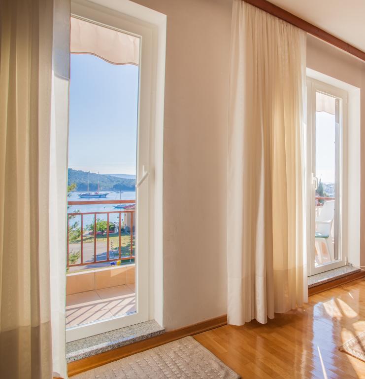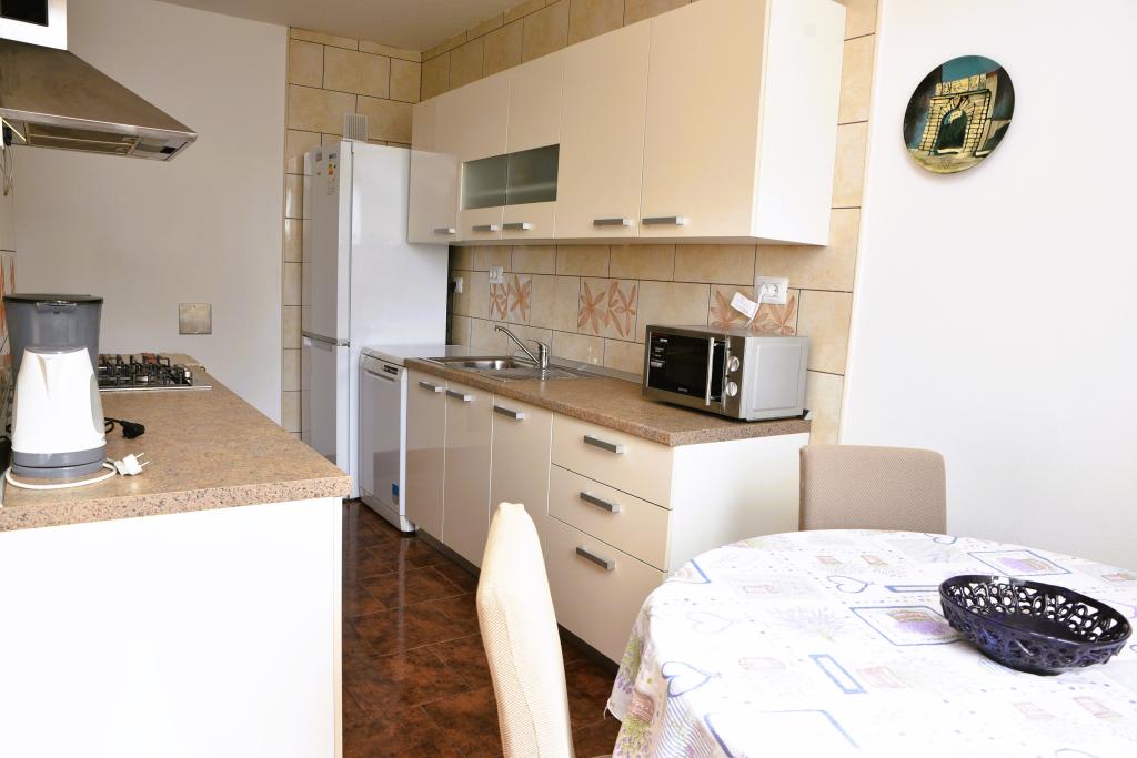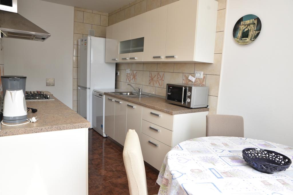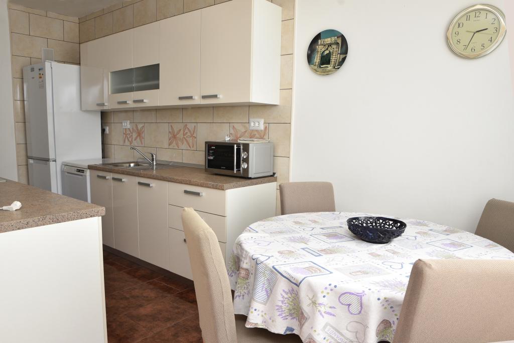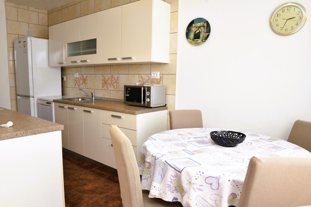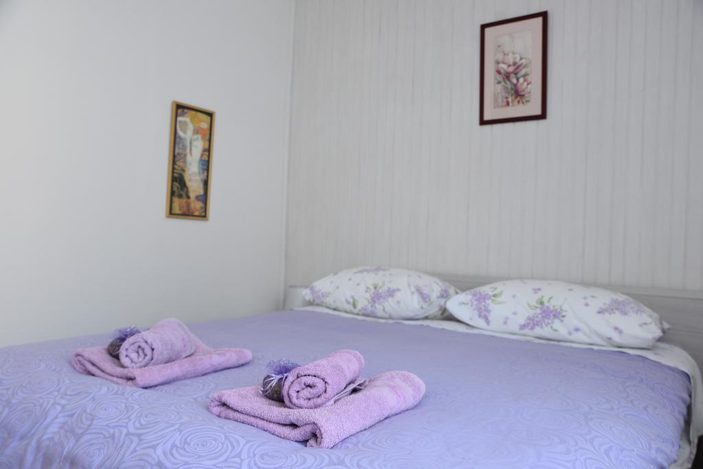 The sea-view apartment enjoys a quiet location on the second (last) floor of a small building, 100 meters from a pebbly beach. In front of the building there is a free public parking lot with a reserved parking space. The apartment (67 m2) has two bedrooms, fully equipped kitchen, bathroom, living room and balcony overlooking the sea. Free WI-FI is available. The apartment is located 5 minutes walk from the pebble beach and 10 minutes walk from the center. The nearest shop, café and restaurant are a 3-minute walk from the apartments.