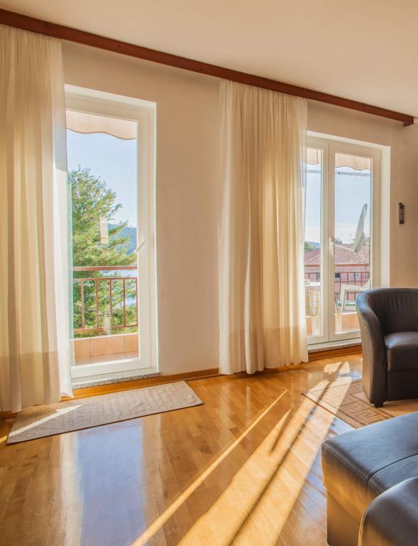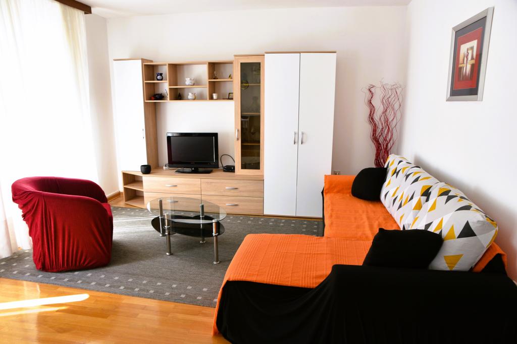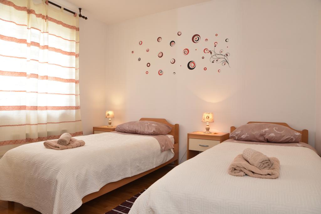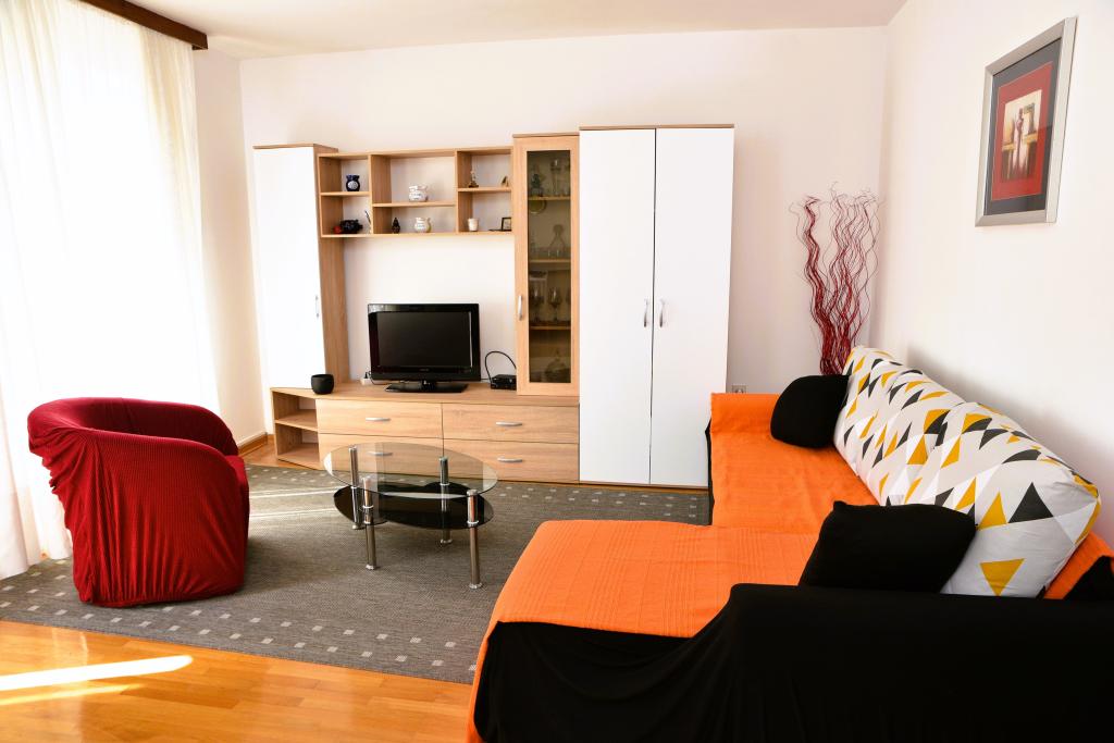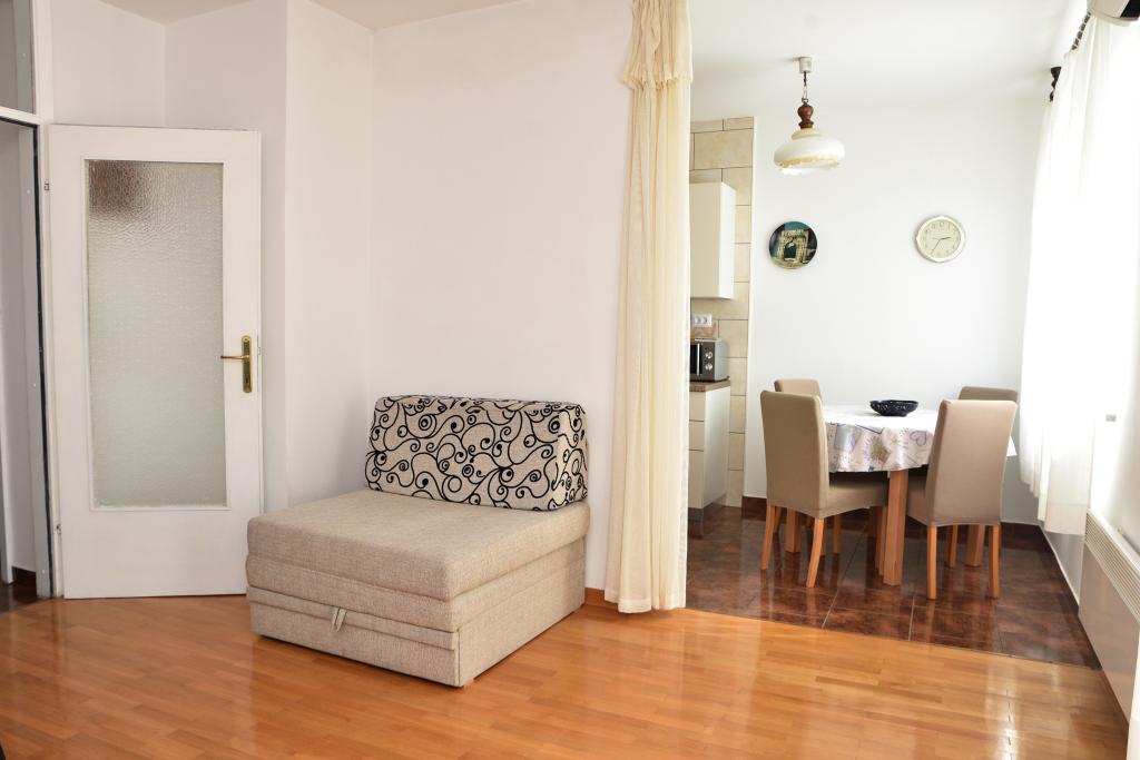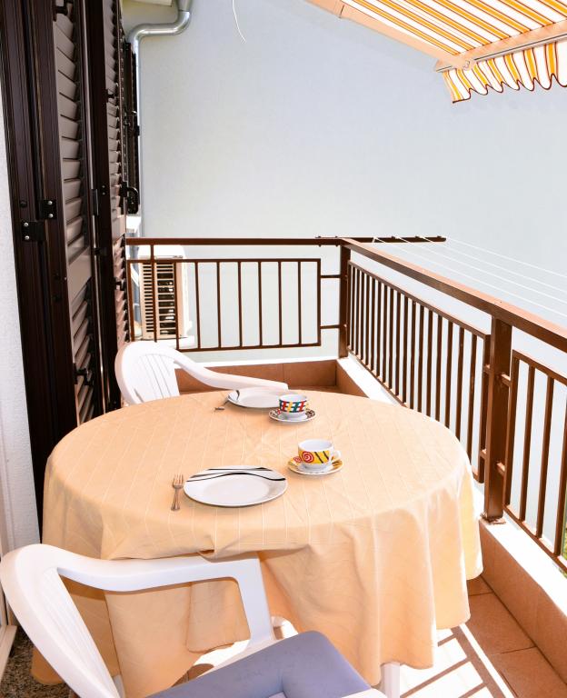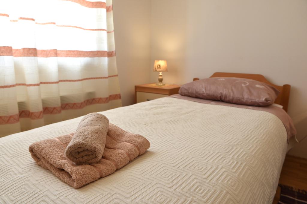 The sea-view apartment enjoys a quiet location on the second (last) floor of a small building, 100 meters from a pebbly beach. In front of the building there is a free public parking lot with a reserved parking space. The apartment (67 m2) has two bedrooms, fully equipped kitchen, bathroom, living room and balcony overlooking the sea. Free WI-FI is available. The apartment is located 5 minutes walk from the pebble beach and 10 minutes walk from the center. The nearest shop, café and restaurant are a 3-minute walk from the apartments.