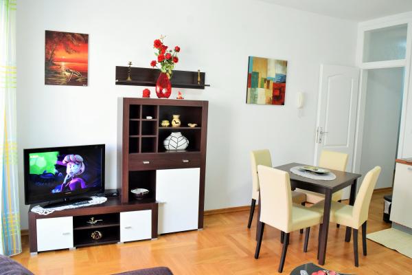 Apartments Lovric are located in a quiet location, 200 meters from the beach. The old town is 400 meters. All apartments include air conditioning, wireless Internet access and balcony. All units are furnished and decorated in colorful colors. The living room contains a flat-screen TV and seating area, and the kitchen is fully equipped and includes a dining room. There is a private bathroom with shower and toilet. The facility is located 50 meters from the grocery shops, cafes and restaurants and 400 m from the market with fresh food. Sports facilities such as tennis and volleyball courts are located at 100 meters. There is free parking on site. The apartments are located 350 meters from the bus station and a short walk from the local marina. Ferry port in Merag is 15 km, and from it floating lines to Krk and surrounding islands.