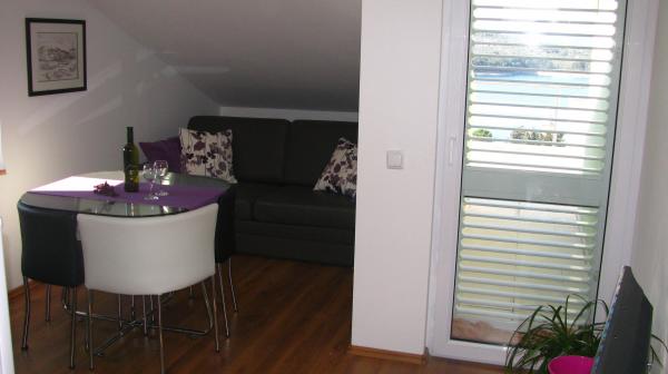 We have stayed with the Bunicic family already 3 times and will come again in the not so far future. The house is situated in a lovely green surrounding,only a 5 minutes walk from the mostly quiet pebbly beach and 10 minutes from a supermarket and pizzeria(very nice).It's also not far from the village centre. The studio is very tasteful decorated and the view over the Bay from the balcony is most beautiful. We'd like to take some friends of us to this charming place. The hosts are extremely friendly and helpful in every respect.