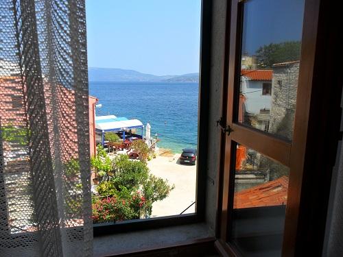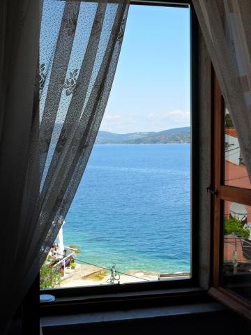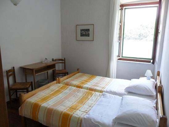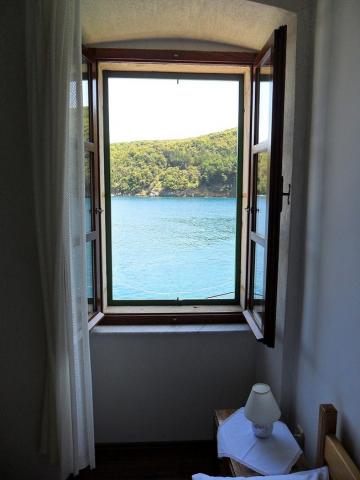 Nice rooms and a studio apartment in the 150 years old stone house, on the sea, in a small village without a hotel and nightclubs. The ground floor houses the restaurant, the rooms are on the 2nd floor and all have the sea views, and the largest room (d) has a balcony. The smalest room (c) has a private, but separate bath. The apartment has a garden terrace.