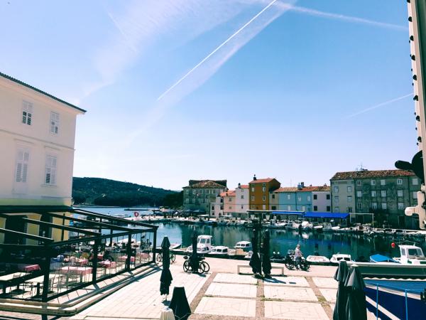 Apartment and room with bathroom are located in the center of the town of Cres and have a wonderful view of the sea and the promenade.