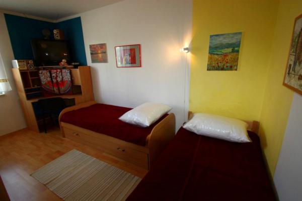 This sunny, quiet holiday apartment is located in Crikvenica, 200 meters from the beach; It consists of 2 bedrooms, living room, bathroom (extra toilet) and a fully equipped kitchen. Free use of Wi-Fi Internet is provided free (and safe) parking. The apartment has air conditioning.