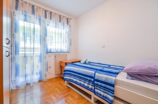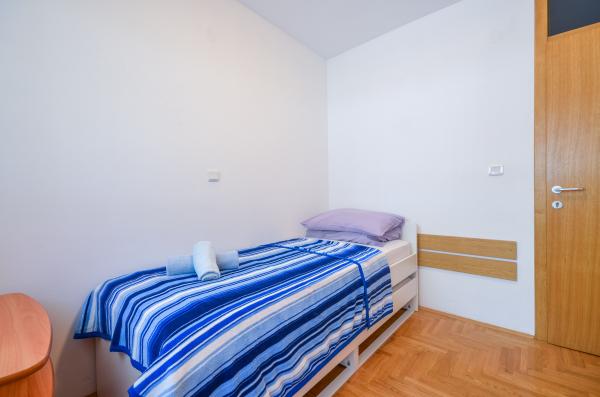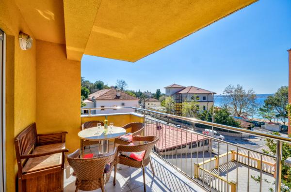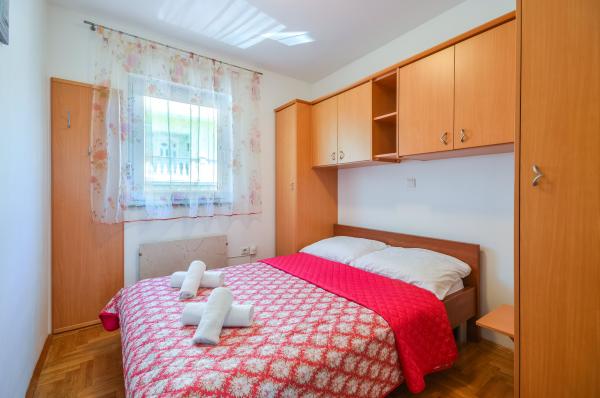 Apartment Valerija is located in a secluded cobbled street, located on the first row to the sea at the famous Crikvenica sandy beach "Crni Mol". Nearby there are several cafe bars located right beside the sea, as well as plenty of restaurants offering fast and slow snacks, next to the apartment there is also a small market with basic groceries and hygienic supplies, as well as a bakery that works almost 24 hours. The town center is about 600 m away or ten minutes of relaxing sea-side walks. The apartment has two separate bedrooms, one with a double bed and one with two single beds. The bathroom has a shower and a washbasin with a toilet. The kitchen is fully equipped with utensils, the fridge has a freezer and there is a water cooker, oven, gas stove, dishwasher and coffee machine. In the same room there is a dining area and a sofa bed for two persons. For breakfast, or for a relaxing dinner with a glass of wine, there is a terrace for 6 people with sea views. Air conditioning, TV and wifi.