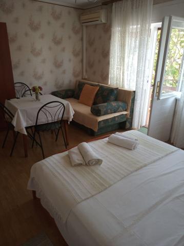 The apartments are located in the quiet town of Dramalj near Crikvenica, at the address Milovan Muževića 116, five minutes by stairs from the beach. Dramalj is connected to the center of Crikvenica by city bus and train. The house has several accommodation units, and the owners also live in it. The apartments are 170 m from the sea. The beaches are pebble and concrete. They are 500 m from the Thalassotherapia spa. They are suitable for smaller families. They are located on the first floor of the family house. Each consists of one bedroom, bathroom with shower and kitchen. They are equipped with free internet, air conditioning, TV, kitchen with stove and dishes, bed linen and towels. Apartment 1 has 30 m2: a bedroom with a double bed and a sofa bed for 2 people, a kitchen and a bathroom, and it has a balcony. Apartment 2 has 35 m2: a bedroom with a double bed and a sofa for one person, and in the kitchen there is a sofa bed 140 cm wide for 1-2 people, and it has a large terrace. Pets are allowed with an extra charge of €10 per night.