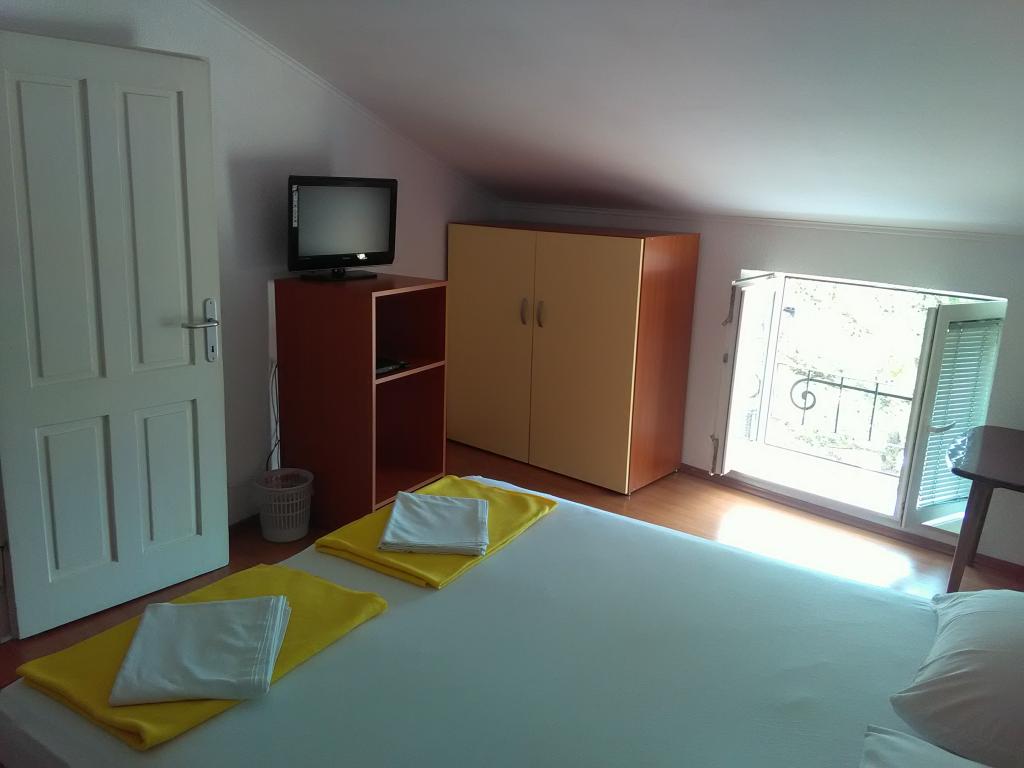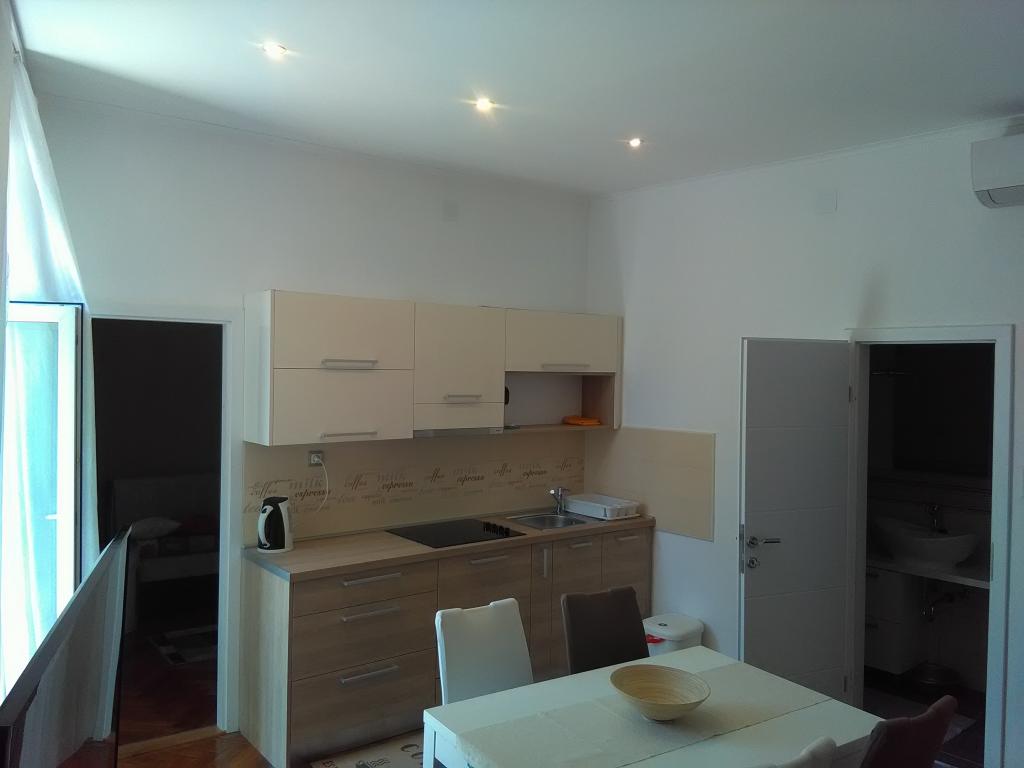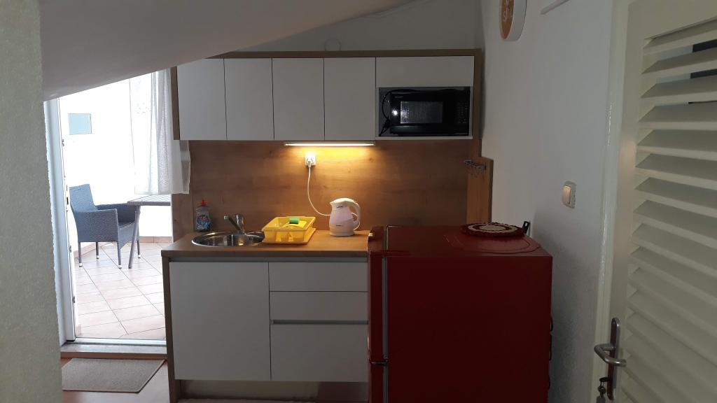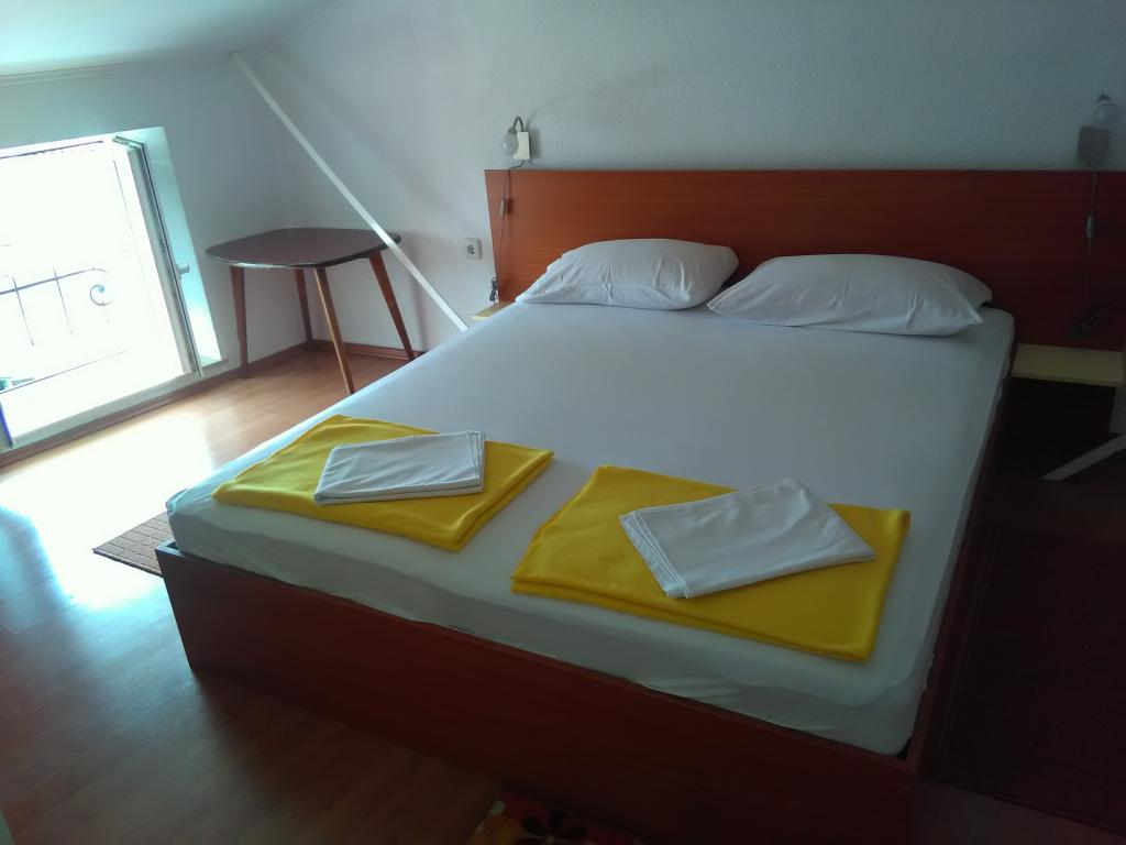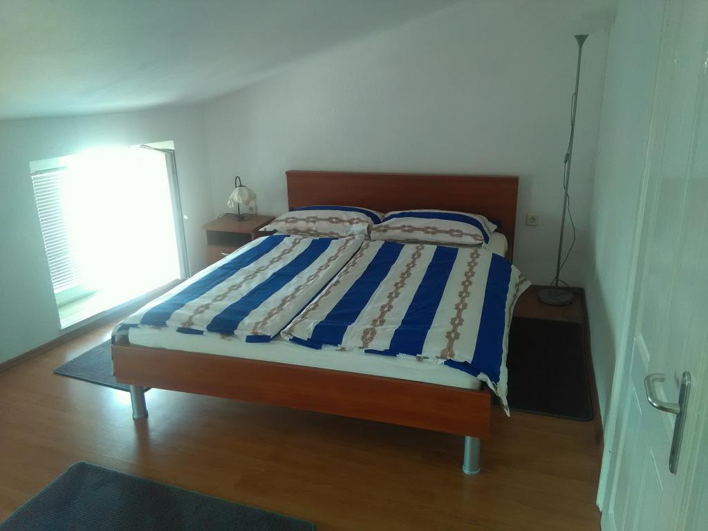 Completely renovated apartment with modern design with a beautiful view of the city center. Apartment for 1-4 persons (40m²). Bedroom, living room with kitchen, bathroom, balcony, TV, wi-fi, air conditioning. Best for 2 adults and 2-4 children. - distance from the beach: 1 min - distance from the restaurant: in front of the house - distance to the market: 2 min - the city parking is 50 m away from the apartment and costs 6 eur per day, the whole attic of the family house, two rooms, kitchen, bathroom, terrace , wifi, tv and air conditioning. The space is located on the third floor and is only accessible by stairs.