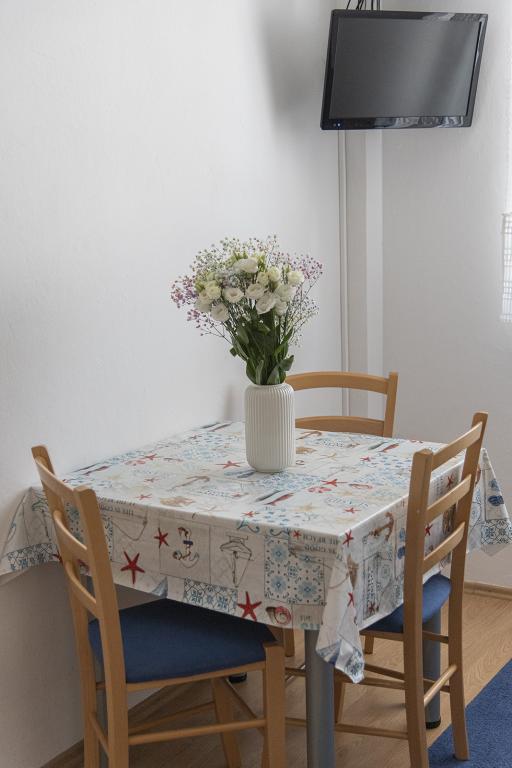 Residential tax is included in price. Booking confirmation document upon reservationThe apartment is located in quiet street and close (6-7 minutes walking) to very nice beach with pine trees. It was very clean (haven't seen such clean apartment in Croatia before). It is part of apartment house with 3 guest apartments (+ one where the owners live). We were family with 2 kids (8 and 10) and A2+1 apartment (ID: 75057) was totally ok for us in terms of space as there are several places around the house (big gazebo and yard), where you can eat, play, talk, listen to music. Especially, you will like this if you are there with another family or group of friends (you have 2 or 3 apartments). Also, you have dishwasher in the kitchen - this is something you will really appreciate and washing machine in the bathroom. The apartment (ID: 75057) looks better in reality than on the pictures. The price for the stay is very reasonable. The owners are very nice, responsive and speak English well.