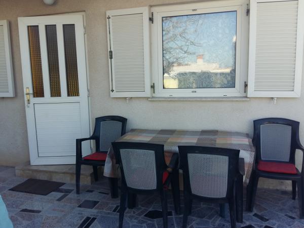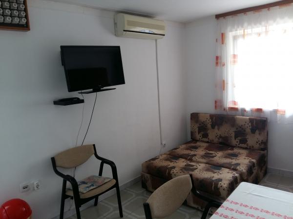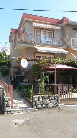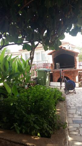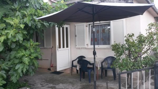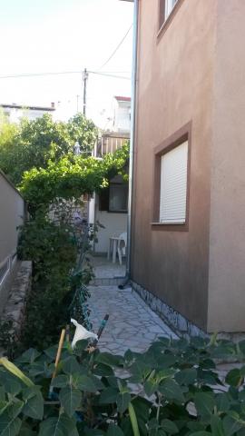 Comfortable apartment 4 1 in a family house, five minutes walk away from the beach, with separate entrance. It consists of an entrance hall and a large living room with dining room and kitchen (about 30 m2) on the ground floor, and on the first floor there are two bedrooms - triple and double bedrooms and a bathroom. The triple room has a large balcony. There are two air conditioners in the room - one in the living room, the other in the large dormitory. There is a washing machine in the bathroom. The apartment is part of a partially shaded courtyard with a sitting set. The kitchen is fully equipped with appliances (refrigerator with freezer, combined gas / electric stove, electric oven, microwave, coffee machine, kettle, toaster) and all kitchen utensils. Simpatic bungalow 2 1, cca 35 m2, separate from the main house. It consists of a kitchen with a dining area and an extra bed for a third person, a bedroom with a double bed, a bathroom and a private terrace overlooking the sea. Equipped with air conditioning and washing machine.