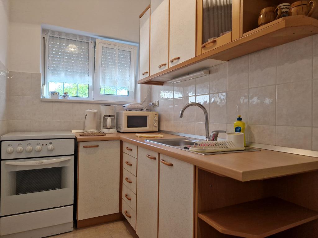 The apartment is excellent, neat, clean and equipped with all household appliances. The terrace and well-kept yard with grill and greenery are great for relaxing. Everything is nearby, so we didn't even need to use the car. And we have only words of praise for the hosts. People are extra friendly and always at your service.