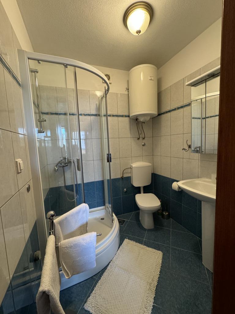 Dear guests, climate change has arrived. Summers are getting warmer, choose accommodations near the sea such as the Tea Katnić apartments. Don't let yourself be stuck looking for a parking space or walking 10-20 minutes uphill to your accommodations during the heat. We offer you all air-conditioned rooms, just 5 minutes from the beach and the sea. Enjoy your vacation and feel at home. We are located next to the Kaštel Hotel and the Church of the Assumption of the Blessed Virgin Mary. There is a pebble beach nearby, suitable for small children. The apartments are suitable for families with children.