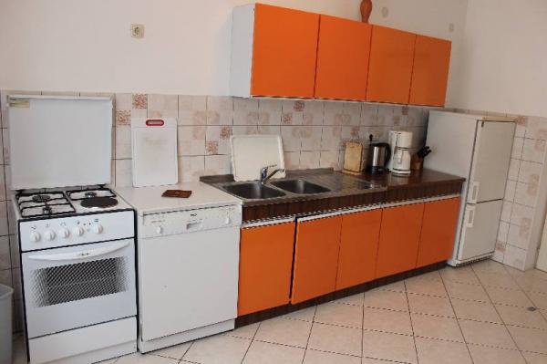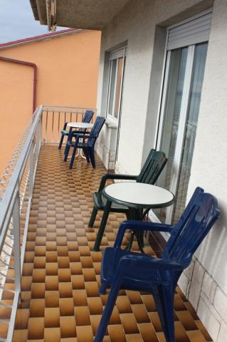The apartment has 2 bathrooms, a balcony overlooking the sea and chairs, living room, 4 bedrooms, large hall and kitchen. The apartment on the first floor has an additional terrace with awning. The facility is located near the city center, so that the car is not needed. Behind the house there is room for roštiljane and kids that can play.