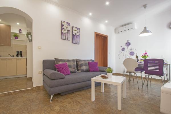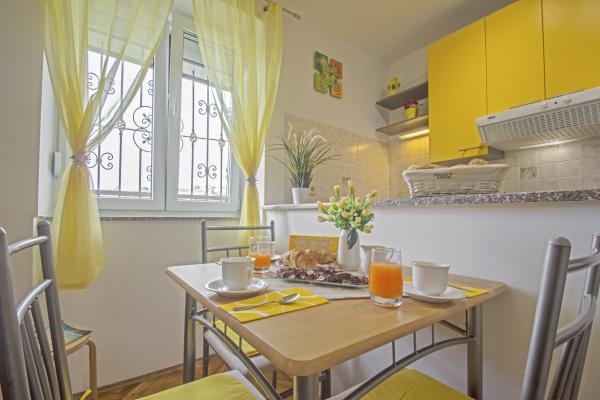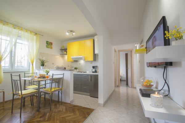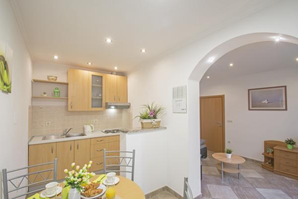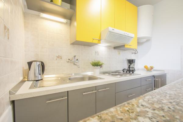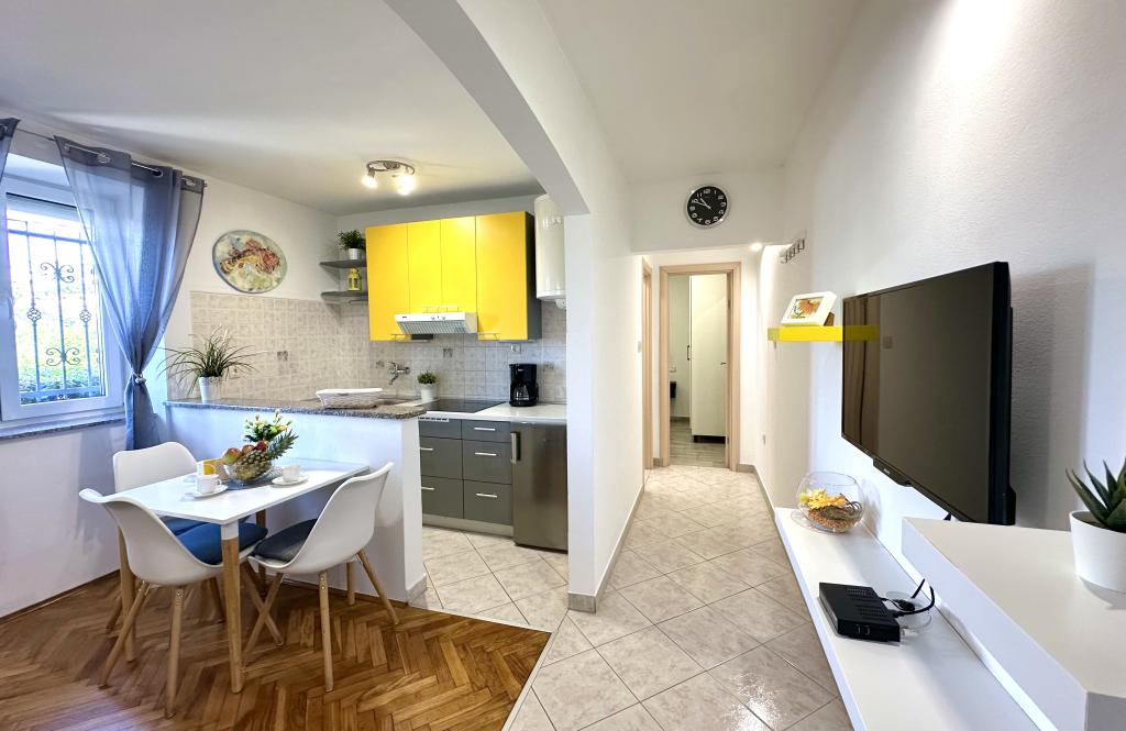 Residential tax is included in price.Everything was extraordinary. The landlady welcomed us warmly. The apartment was clean, tidy and well equipped. We had everything we needed. The children were very happy with the sweets that awaited them in the fridge, as well as juice, water and iced tea. A beautiful gesture from the owner. Plodine and Konzum shops are close by. The beach is also close. We went to each one on foot. I have only words of praise. Such phenomenal hosts are rare today. Thanks to you, we had an unforgettable summer vacation. Thank you.