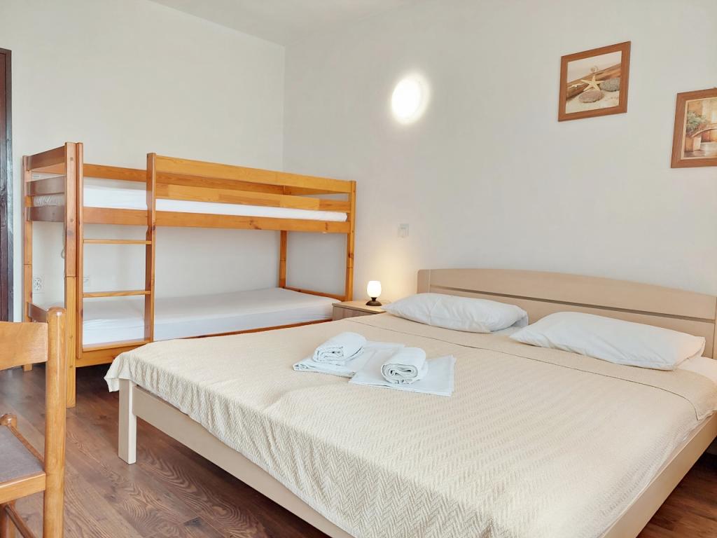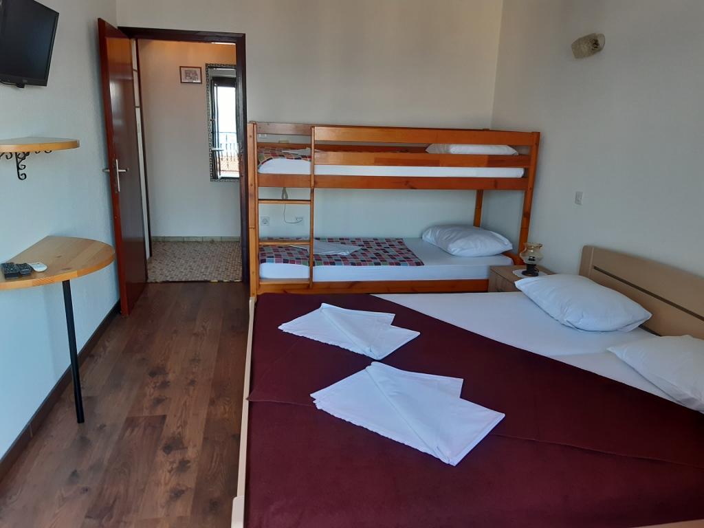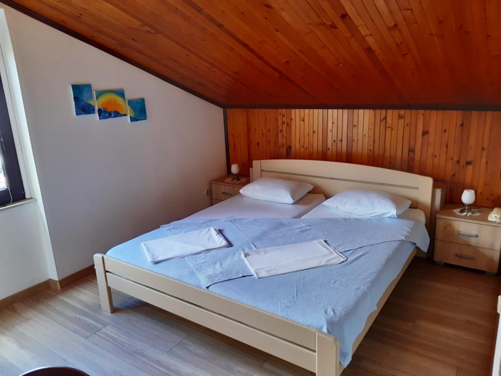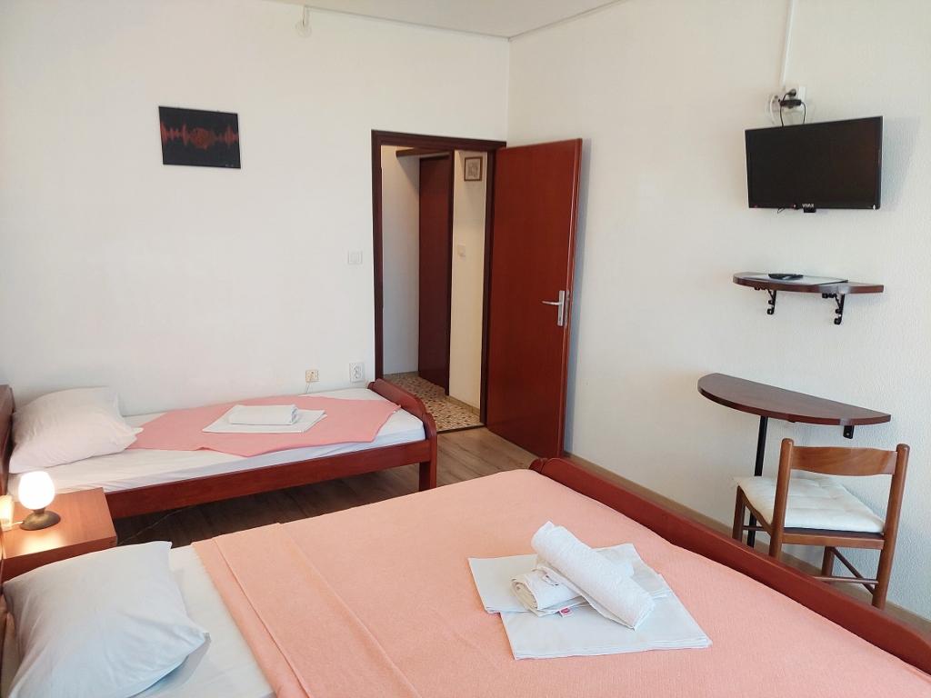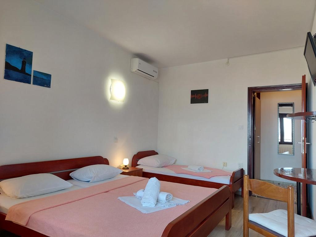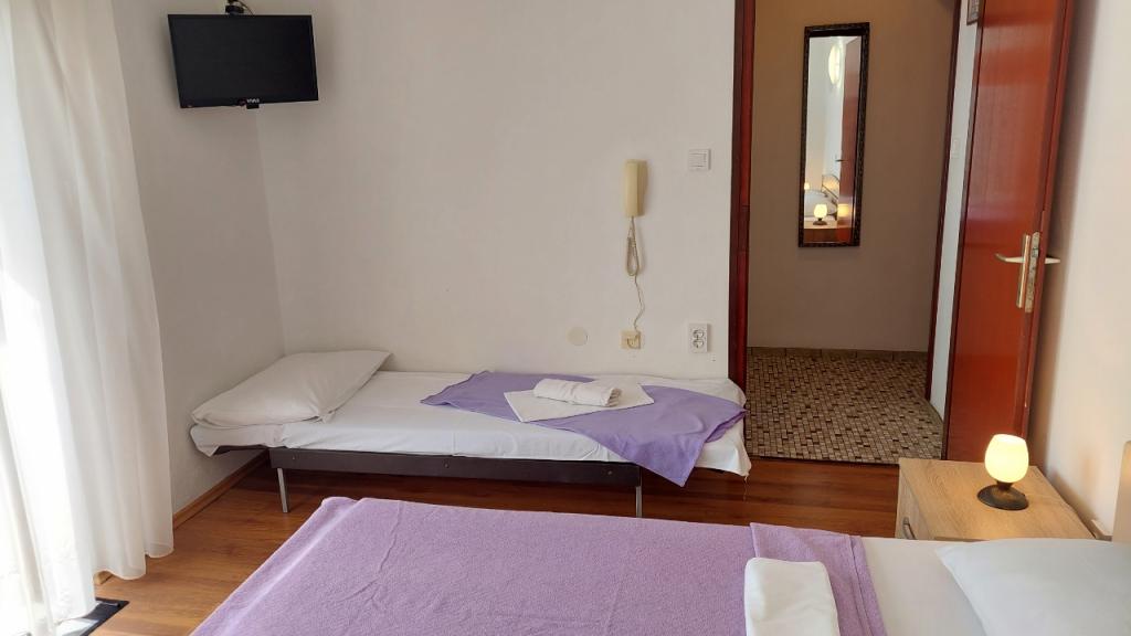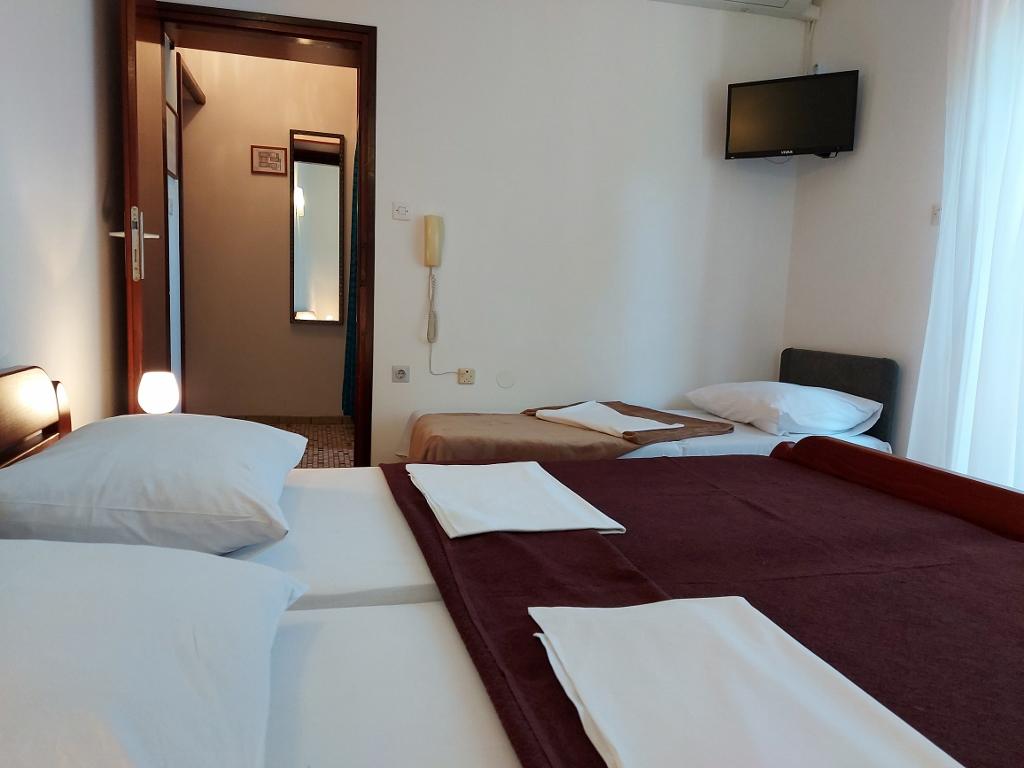 PANSION KLAUDIJA, with a family tradition of more than 40 years, offers accommodation in 14 fully equipped rooms: shower, toilet, balcony (12 rooms with sea view), central heating, telephone, SAT/TV and air conditioning. Other facilities include: - private parking, - lounge with SAT/TV, - safe, - restaurant with bar and garden terrace, - beautiful garden with fountain. - free internet (Free WIFI) Our guests, as well as all other visitors, have at their disposal a restaurant with 80 seats and an open terrace. In a pleasant atmosphere with friendly staff, they can enjoy many specialties of local and international cuisine.