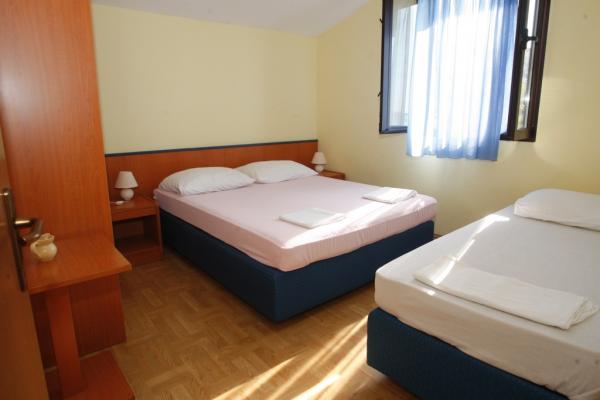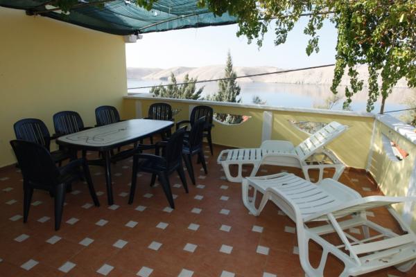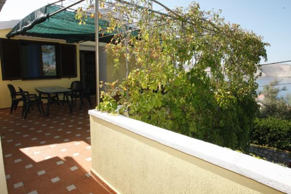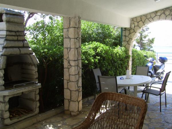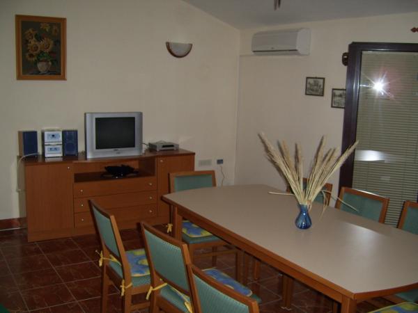 Fully equipped and modern apartment of 110 m2 with a terrace of 50 m (covered shade and awning) and the apartment is located 50 meters from the sea / beach. The apartment has three bed rooms and a large living room with balcony and two bathrooms and two kitchens on the terrace are two large table and 6 loungers. The apartment is in the house (separate beds) which is the owner of his apartment in the grounds of 8.oo m 2, which makes the stay as if you were in your own home and is suitable for a room of adults and children who have a great place to play and socializing. The apartment is on the terrace and a separate cottage with intend and summer kitchen.