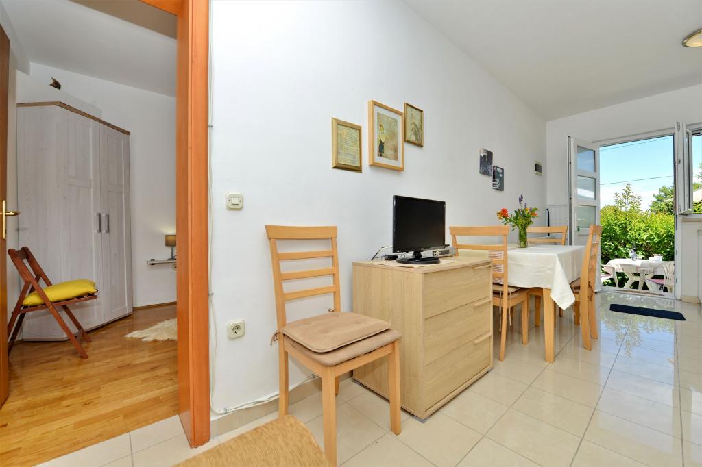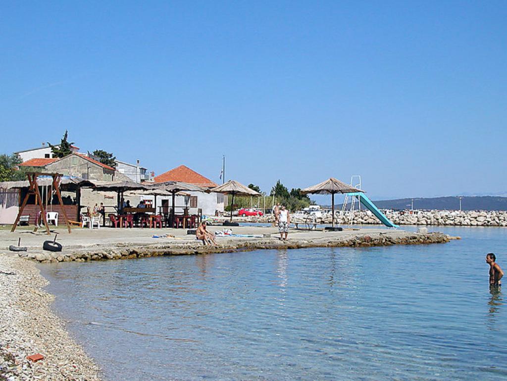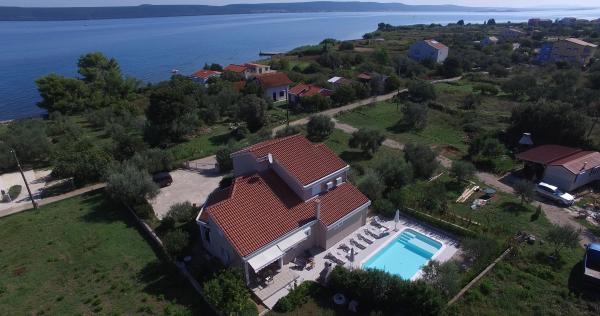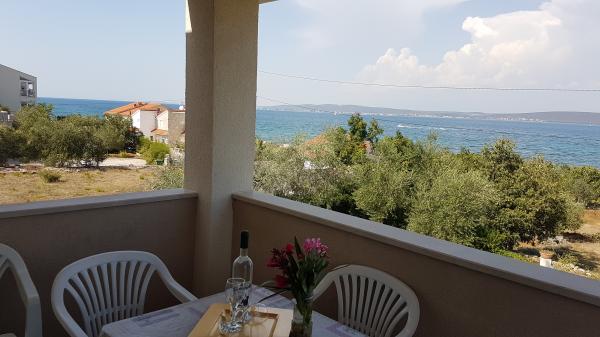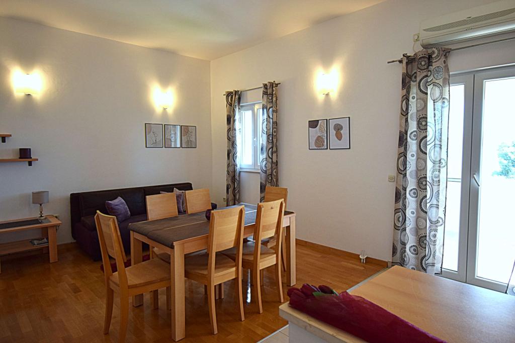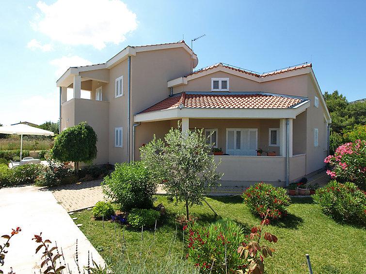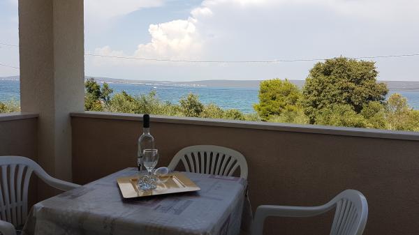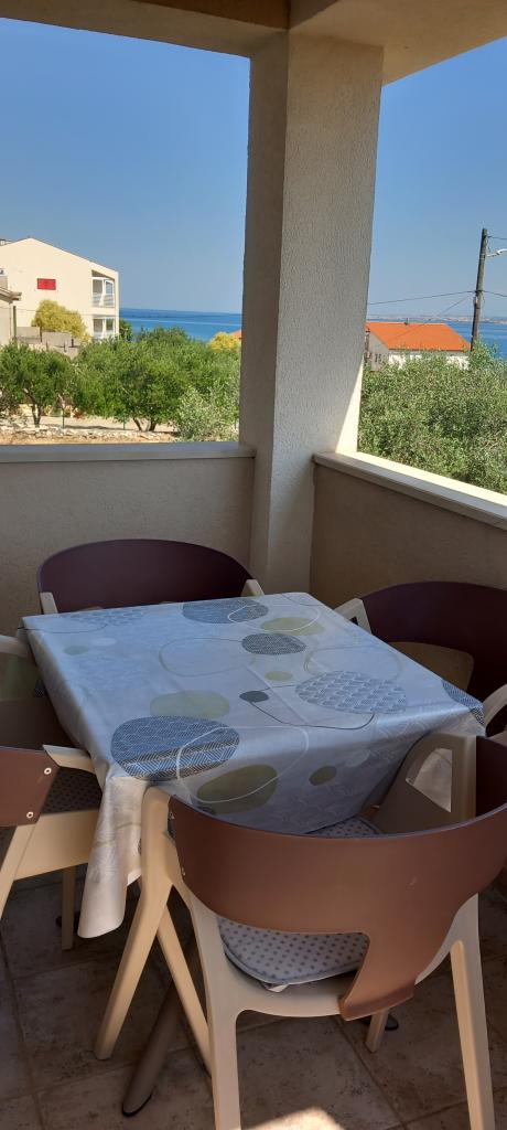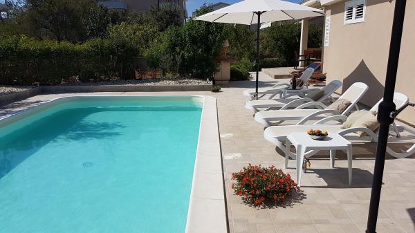 Villa with 3 apartments Karla. In a quiet, sunny position, 100 m from the sea, 100 m from the beach. For shared use: swimming pool rectangular (8 x 4 m, 135 cm deep, 15/04 to 14/10) with internal stairs. Barbecue. In the house: internet access. Spacious and secure parking with a villa on the plot. Shop, restaurant 700 m, cafe 100 m, sandy beach 800 m, pebble beach, pebble beach, rocky beach 100 m. Apartments are newly decorated, air conditioned and fully equipped for idyllic holidays. Apartment 1, on the ground floor with plateau and outdoor playground, sea view. Apartment 2, on the first floor, covered terrace with furniture, beautiful sea view.