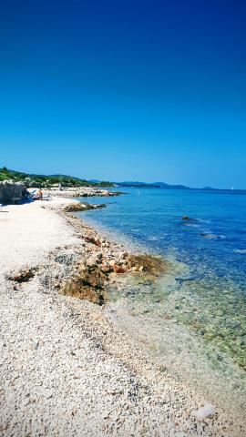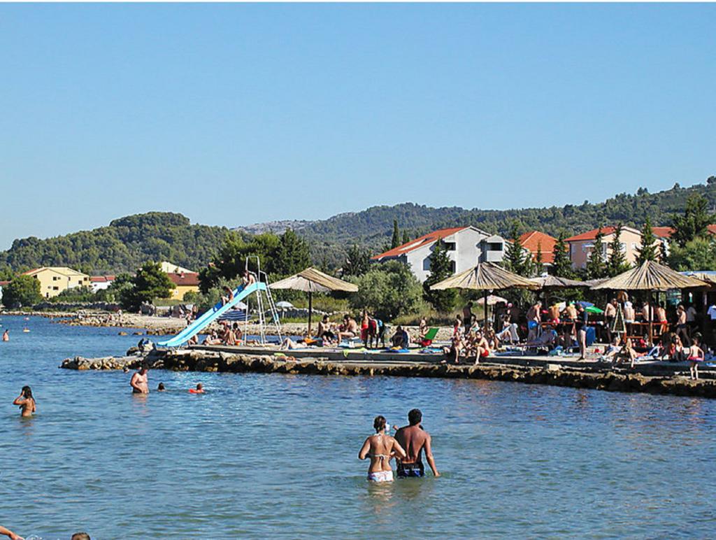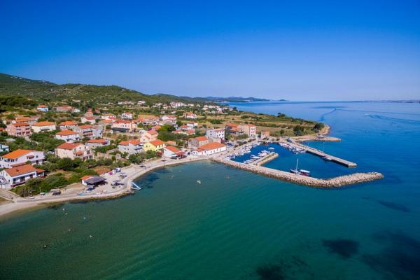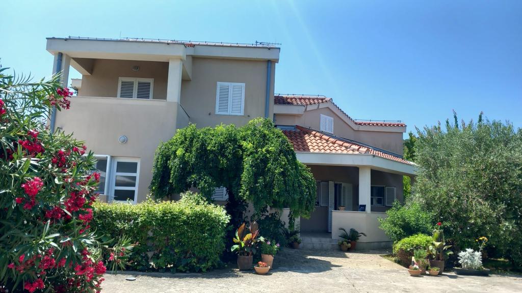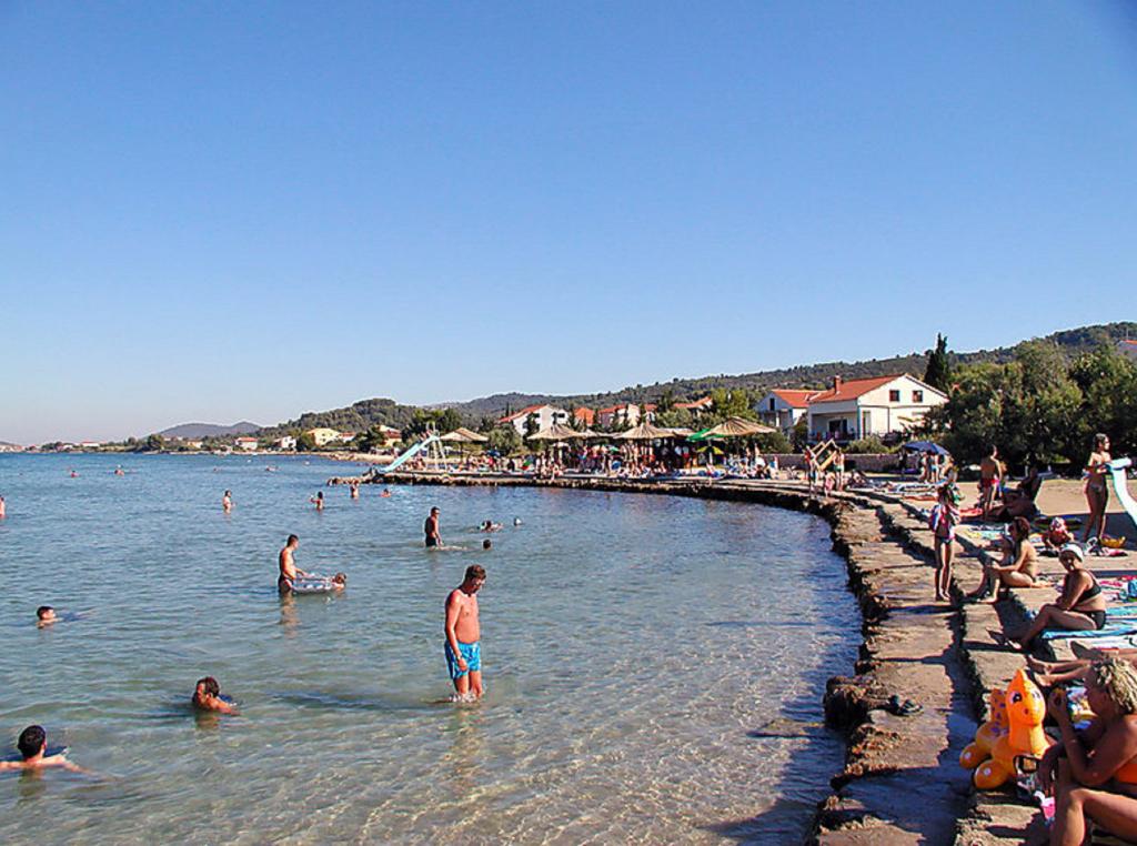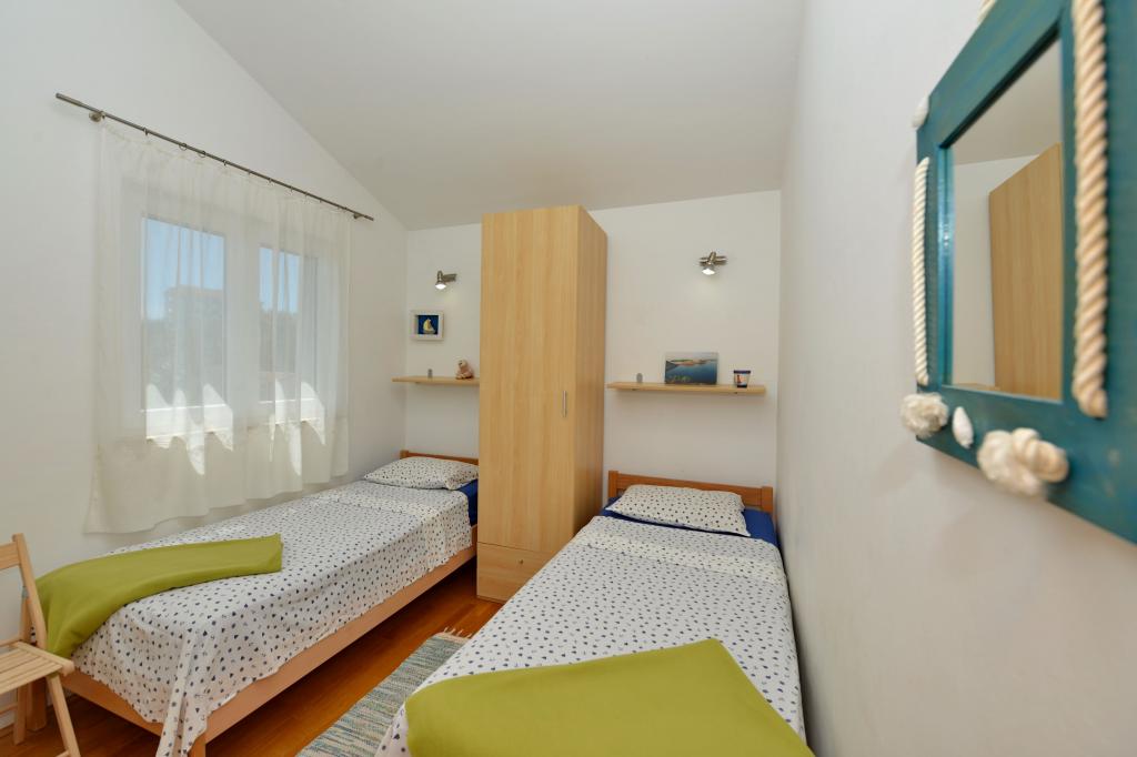 Villa with 3 apartments Karla. In a quiet, sunny position, 100 m from the sea, 100 m from the beach. For shared use: swimming pool rectangular (8 x 4 m, 135 cm deep, 15/04 to 14/10) with internal stairs. Barbecue. In the house: internet access. Spacious and secure parking with a villa on the plot. Shop, restaurant 700 m, cafe 100 m, sandy beach 800 m, pebble beach, pebble beach, rocky beach 100 m. Apartments are newly decorated, air conditioned and fully equipped for idyllic holidays. Apartment 1, on the ground floor with plateau and outdoor playground, sea view. Apartment 2, on the first floor, covered terrace with furniture, beautiful sea view.