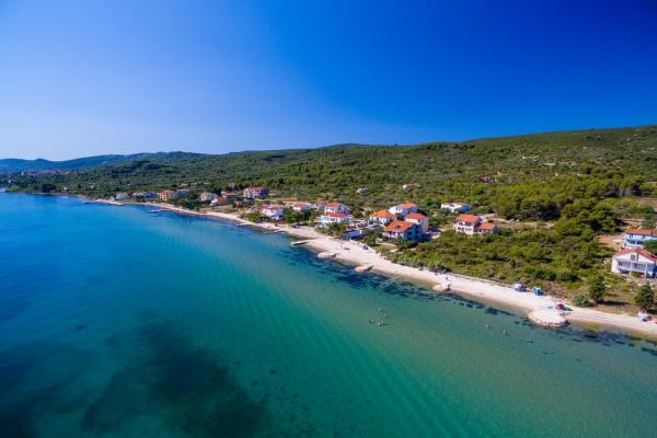 In the resort, 800 m from the villa, a beautiful sandy beach with additional amenities suitable and safe for children. 100 m from the villa, pebble beach. In the place, sheltered, secure and free boat mooring.